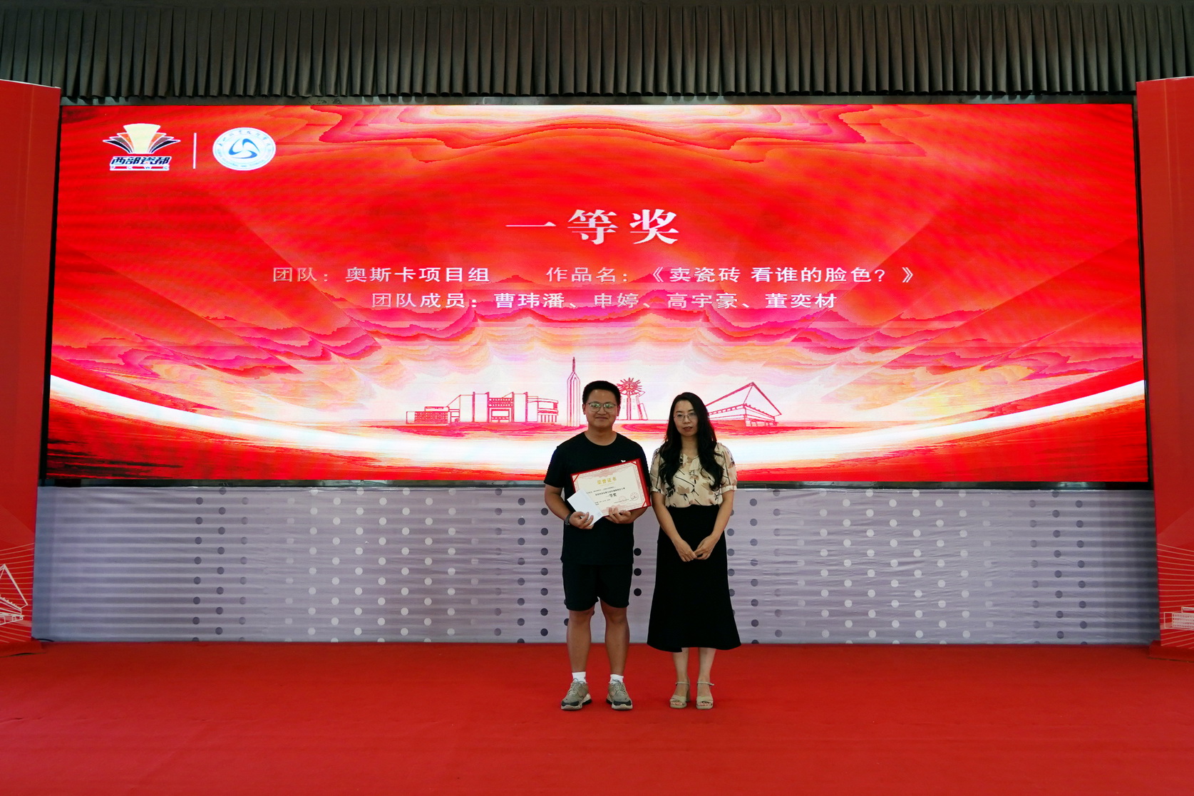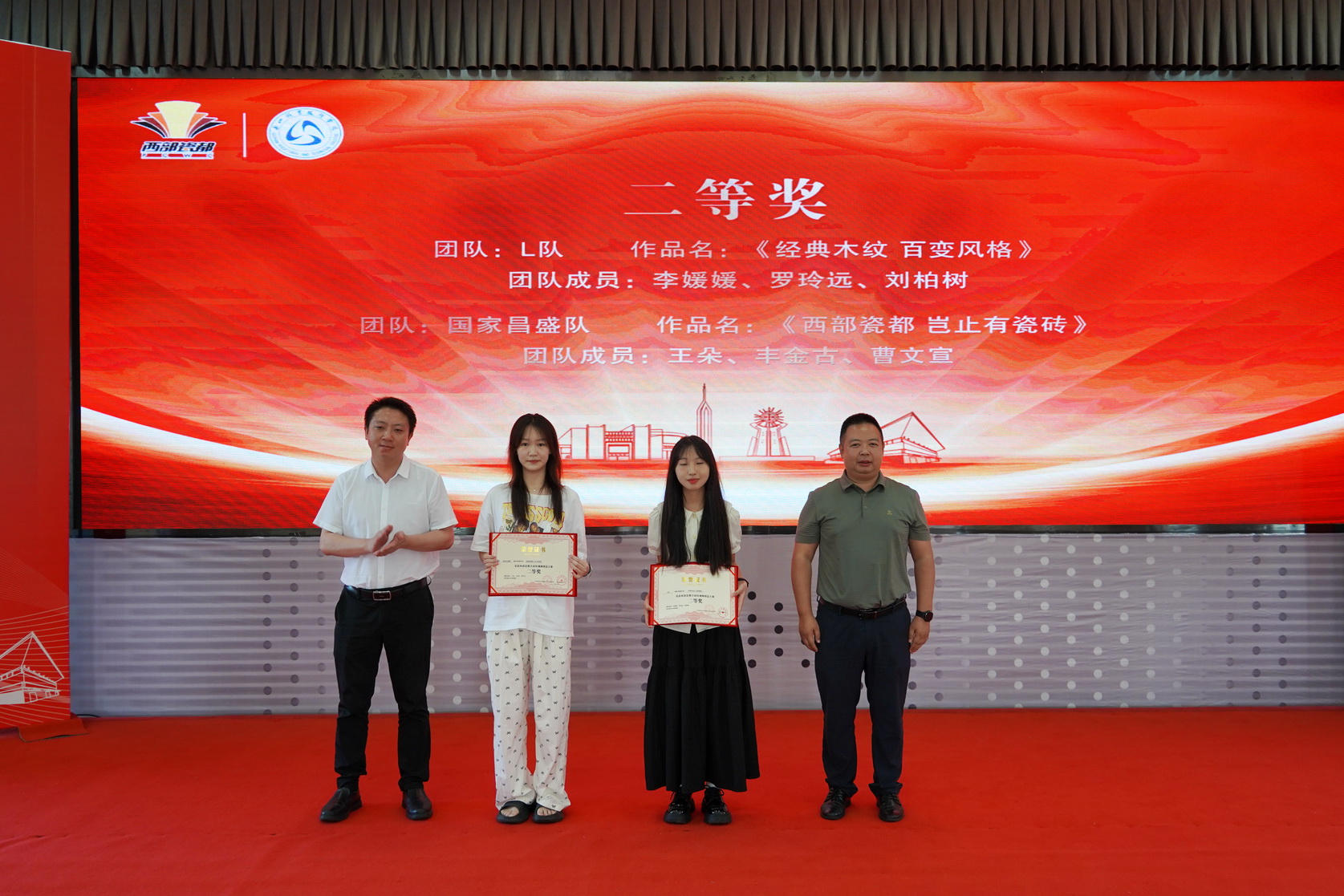 “首届西部瓷都短视频创意大赛”旨在挖掘和培养优秀的短视频创作人才,推动夹江县陶瓷产业的创新发展和品牌传播。活动自4月11日启动以来,受到了广大师生和社会各界的广泛关注和积极参与,38个团队100多名选手参加比赛。大赛共收到短视频创意作品38个,这些作品主题丰富、形式多样,从不同角度展现了夹江县陶瓷产业的独特魅力和文化内涵。经过专业评委的严格评审,最终评出一等奖1项、二等奖2项、三等奖3项和4个单项奖。其中,学校融媒体中心成员曹玮潘组建的“奥斯卡项目组”作品《卖瓷砖,看谁的脸色?》获得一等奖,学校融媒体中心成员李媛媛组建的“L队”作品《经典木纹 百变风格》、“国家昌盛队”作品《西部瓷都 不止有瓷砖》获得二等奖,“无所畏惧队”作品《柔光砖 用户挑刺》、“‘钱’途无量队”作品《假如瓷砖可以说话》、“黑暗骑士队”作品《出彩QD瓷砖秀》获得三等奖。“奥斯卡项目组”获“演绎之星”、“风雨无阻队”获“创意之星”、“国家昌盛队”获“摄影之星”、“一心队”获“流量之星”。