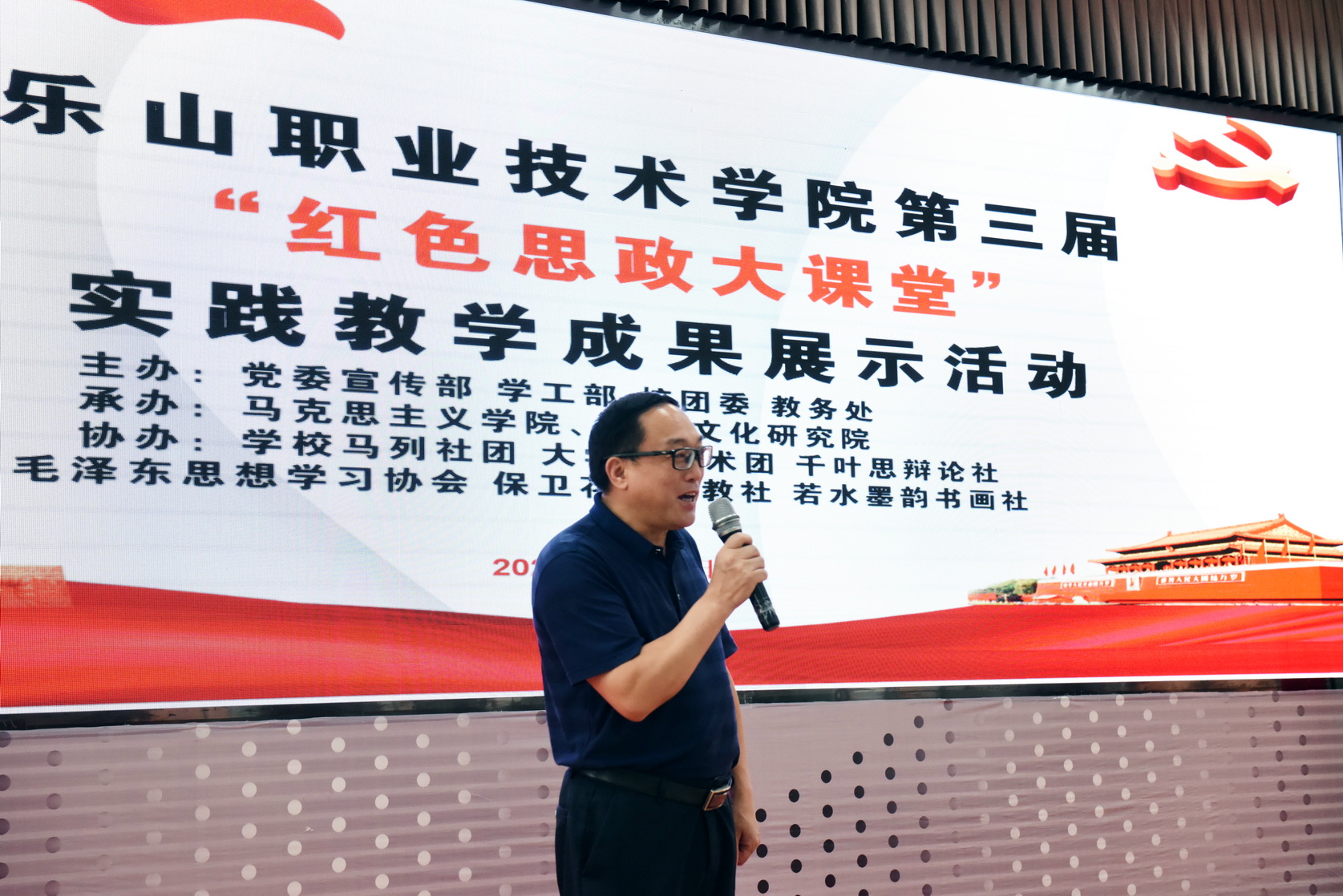 成定彬在总结讲话中充分肯定了本次实践教学成果展示活动,认为展示活动“形式多样、内容丰富、教育效果好”,是一场成功的“红色思政大课堂”,对于推动思政小课堂与社会大课堂相结合具有重要意义。他寄语青年学子要爱党、爱国、爱社会主义,要珍惜时光、把握好当下,要勤奋学习、苦练技能,为实现中国式现代化贡献自己的力量。