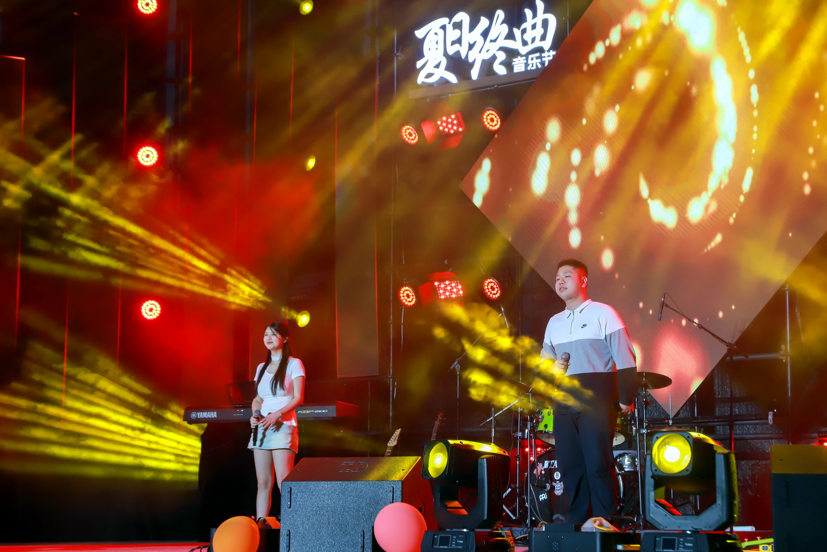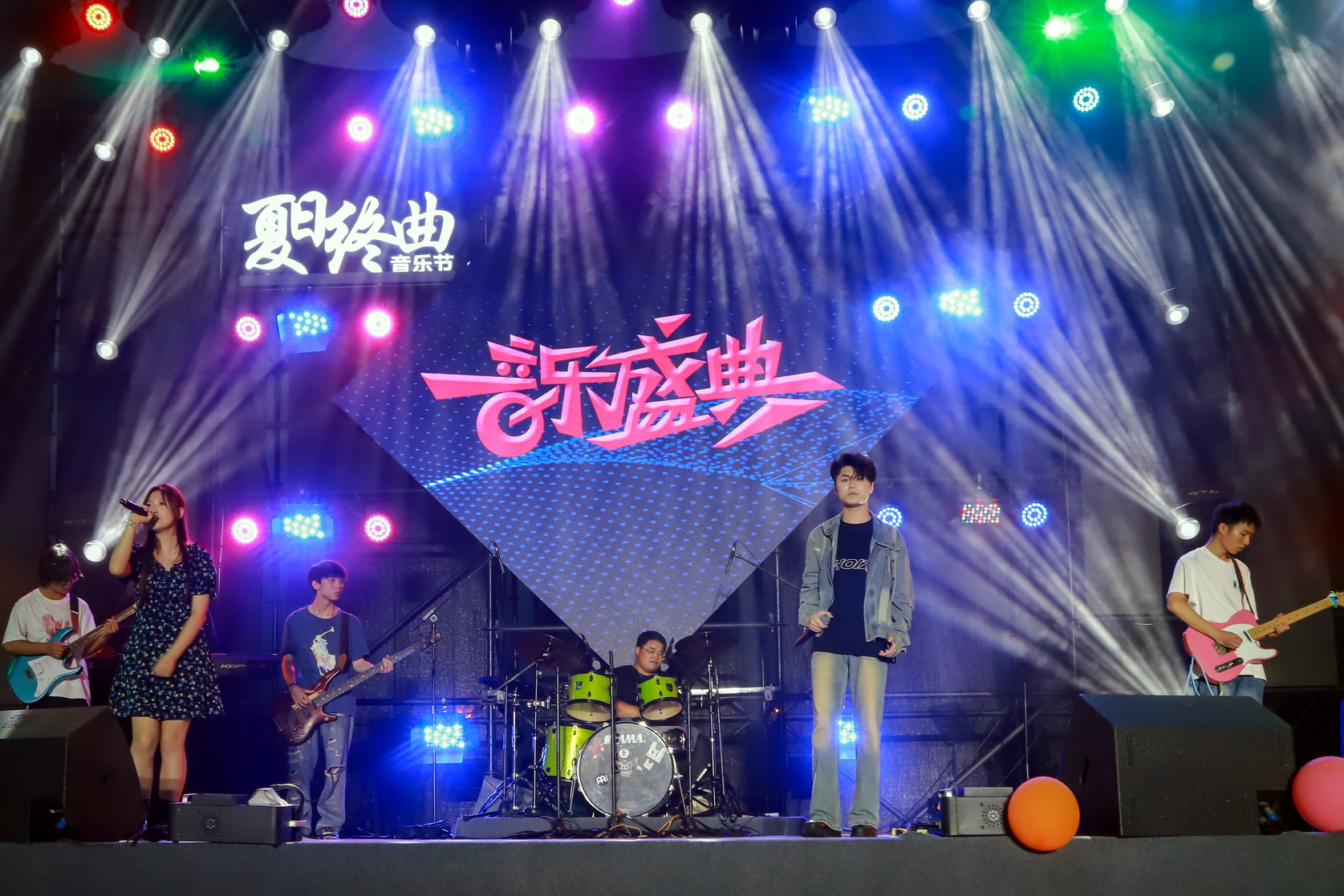 夏日的微风吹起同学们的热情与期待,流光溢彩的舞台承载着爱与希望,激情澎湃的音乐升腾着希望和梦想。音乐节上,大三学生和往届学长、学姐激情参演,老师组成神秘嘉宾用歌唱、舞姿献礼,引来现场一阵阵热烈的欢呼声。