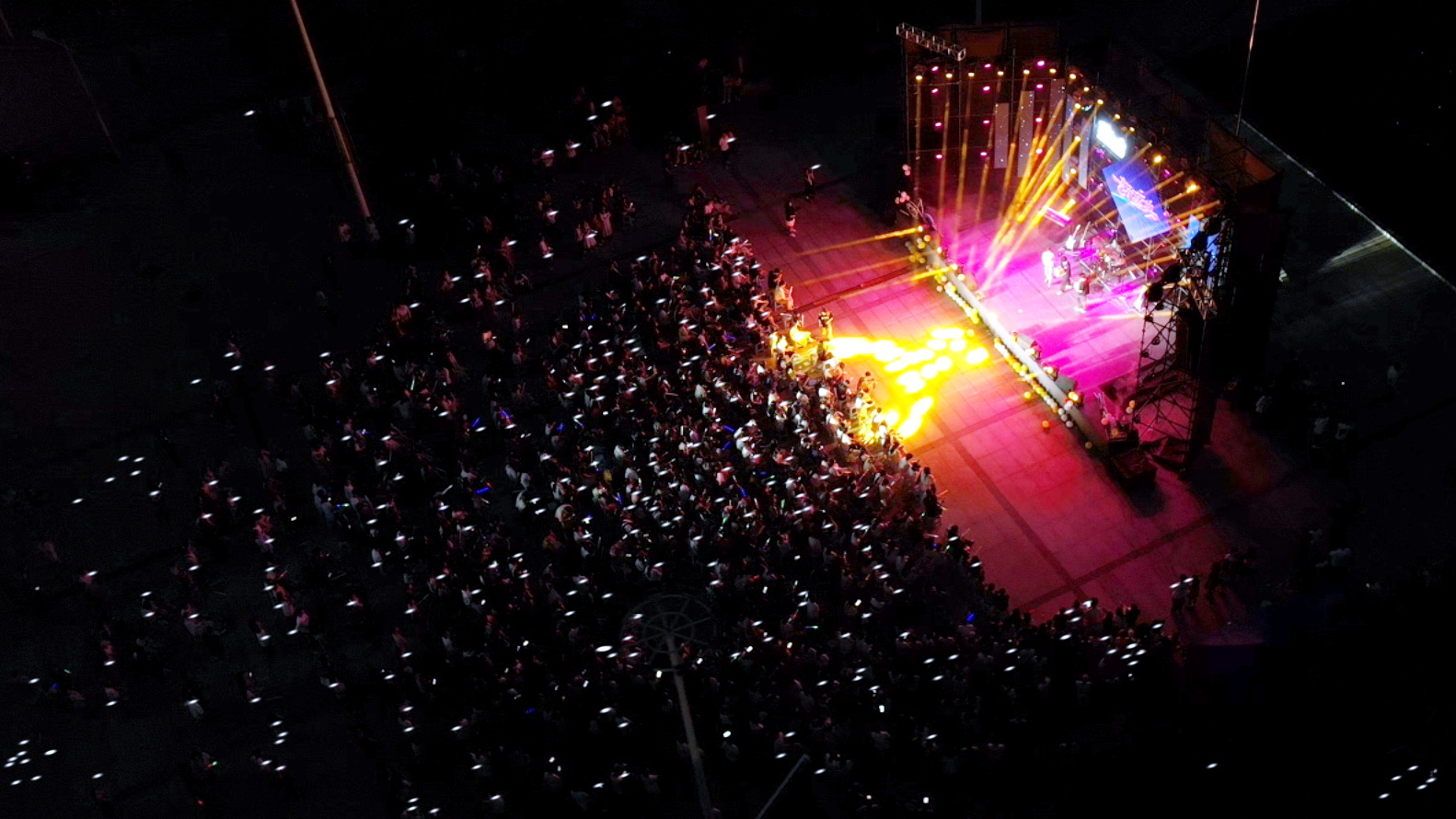 在这个五彩斑斓的夜晚,明德广场变成了欢乐的海洋,近两个半个小时的演出深深感染着每一位观众。最后,乐队与观众共同激情演唱《你曾是少年》,用动人的旋律将青春的故事娓娓道来,同学们挥舞着手中的荧光棒和手机灯光,如繁星洒满天幕,载着难忘的回忆,乐职学子用歌声唱响青春岁月,尽显朝气蓬勃。