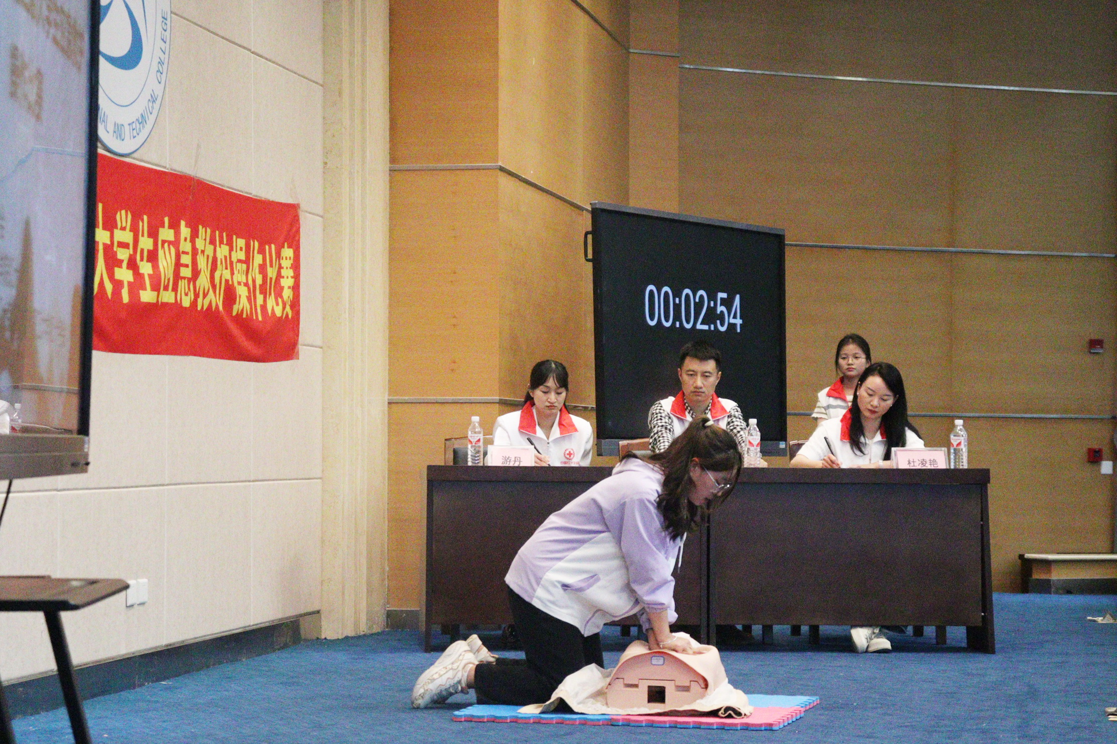 本次比赛以提高在校大学生的安全和急救意识、增强大学生的自救互助能力为目的,致力于进一步促进青少年形成积极健康的人格和良好的思想道德素质。比赛由3位红十字救护师资担任评委。比赛中,选手们进行了心肺复苏技能操作,展现出合理果断的处置能力、娴熟专业的施救技能,赛出了红十字救护员、青年志愿者、当代大学生的风采。经过激烈角逐,乐山职院护理学院普专护理22-7班安虹同学获得一等奖。