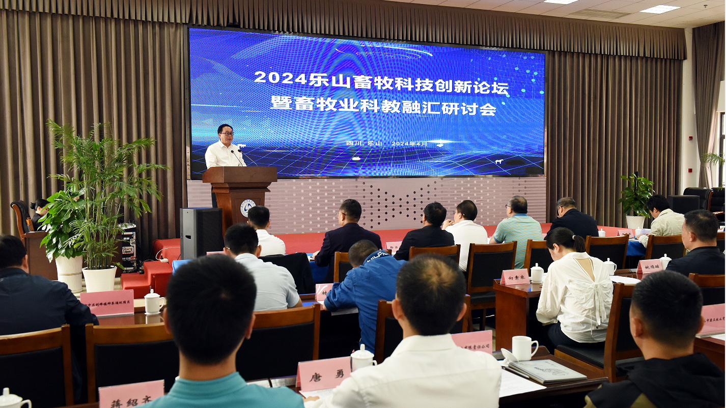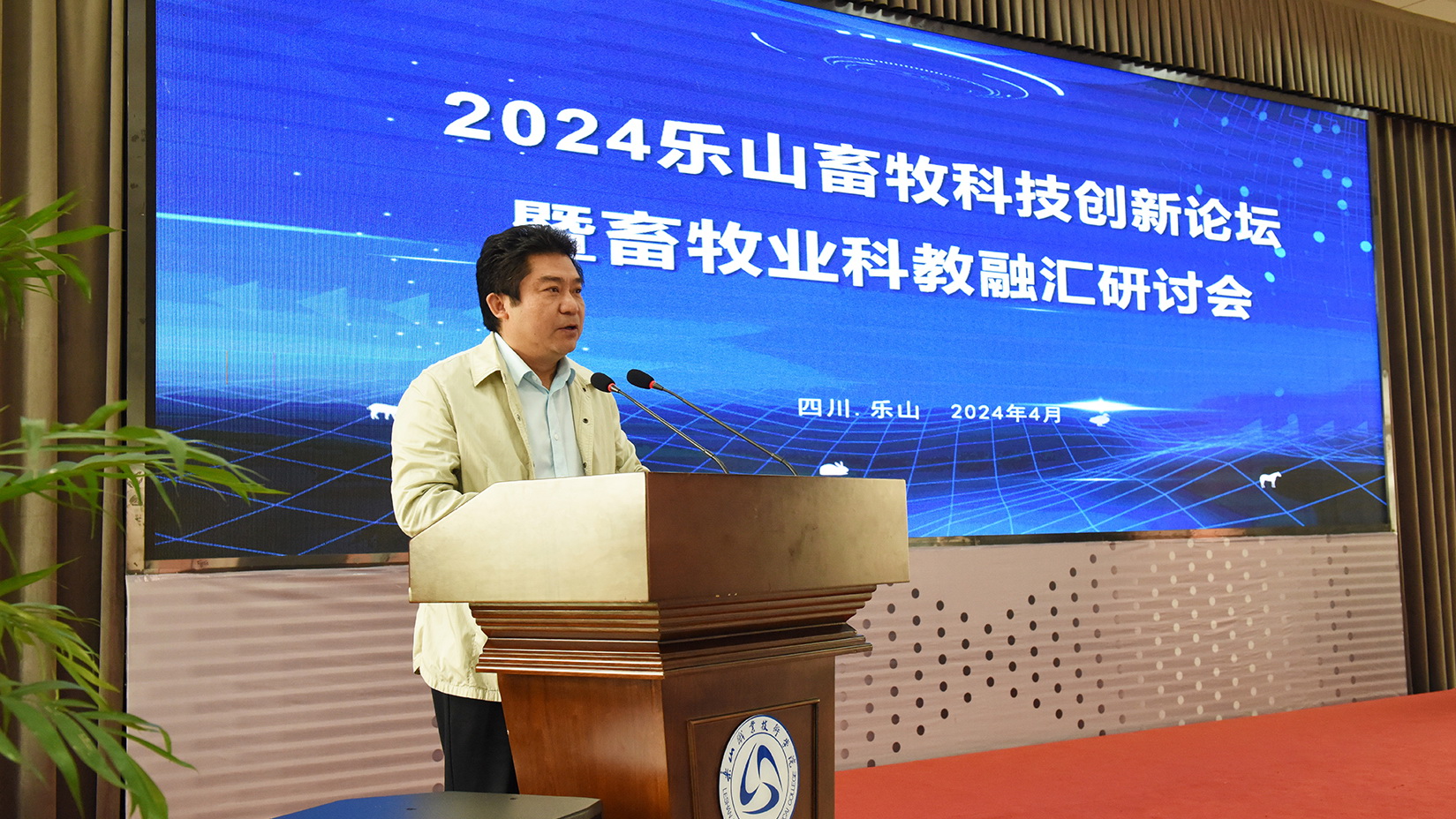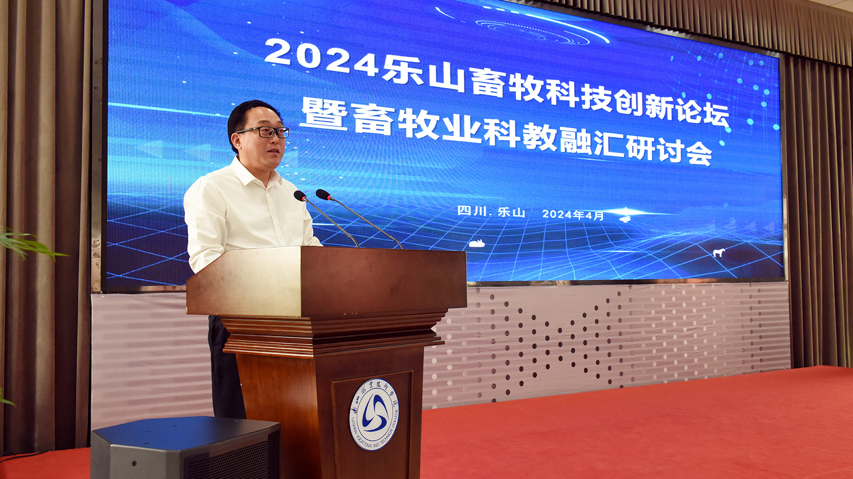 2024年4月29日至30日,2024乐山畜牧科技创新论坛暨畜牧业科教融汇研讨会在beat365英国官方网站举行。会议由乐山市科技局、乐山市农业农村局主办,beat365英国官方网站承办,乐山市农业科学研究院协办。来自重庆市畜牧科学院的专家,乐山市科技局、乐山市农业农村局相关领导,乐山市畜牧业优秀企业代表以及现代农业学院师生,共计100余人参加了会议。会议由学校党委委员、副校长封家福主持。