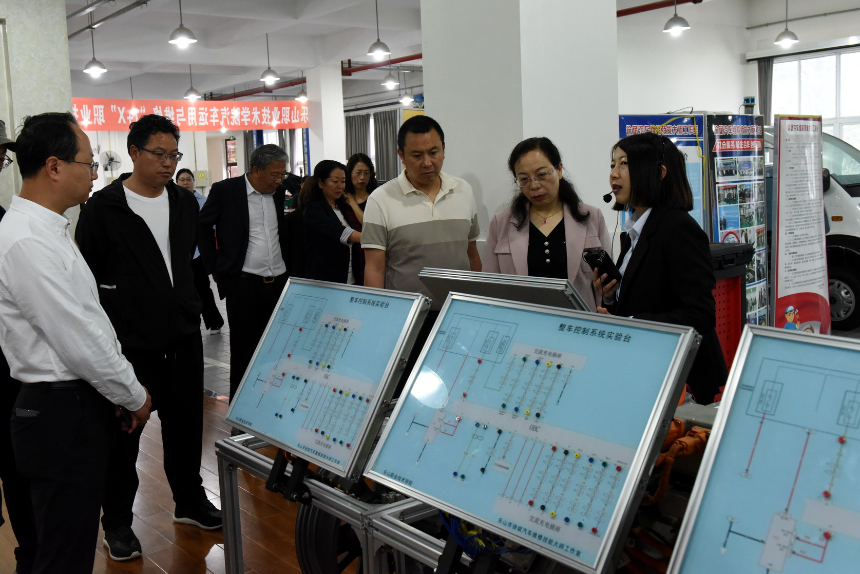 曲梅一行在图书馆参观了四川省知识产权公共服务乐山分平台、嘉州记忆▪地情馆和智慧能源中心,在实习工厂实地考察调研了汽车生产性实训基地、多晶硅仿真实训工厂、智能制造协同创新中心、机械加工实训中心、新能源创新实验实训基地和储能电池实训中心,直观感受学校在职业教育与产教融合方面的创新实践。调研过程中,曲梅一行详细了解了学校专业设置、产教融合模式、校企合作机制以及教学科研成果等方面的情况。曲梅对学校在职业教育建设和产教融合发展方面取得的显著成绩给予了高度评价,并对学校在四川省“双高计划”建设中取得的成绩表示赞赏。