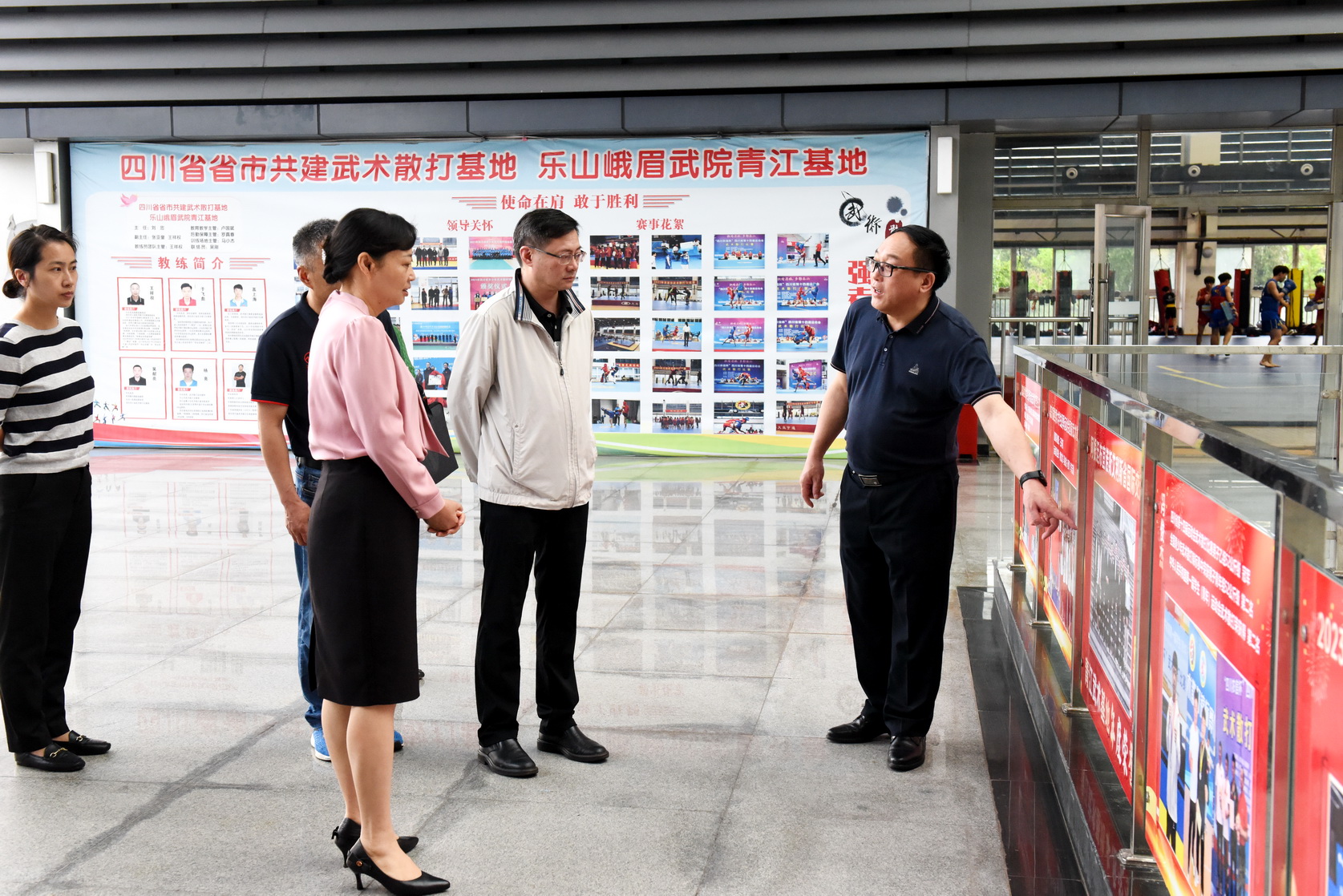 罗素平一行参观考察了校园内的峨眉武术青江基地、教师发展中心、四川省知识产权公共服务乐山分平台、嘉州记忆▪地情馆、学生公寓党员工作站、3号实训工厂和医护实训基地等。
