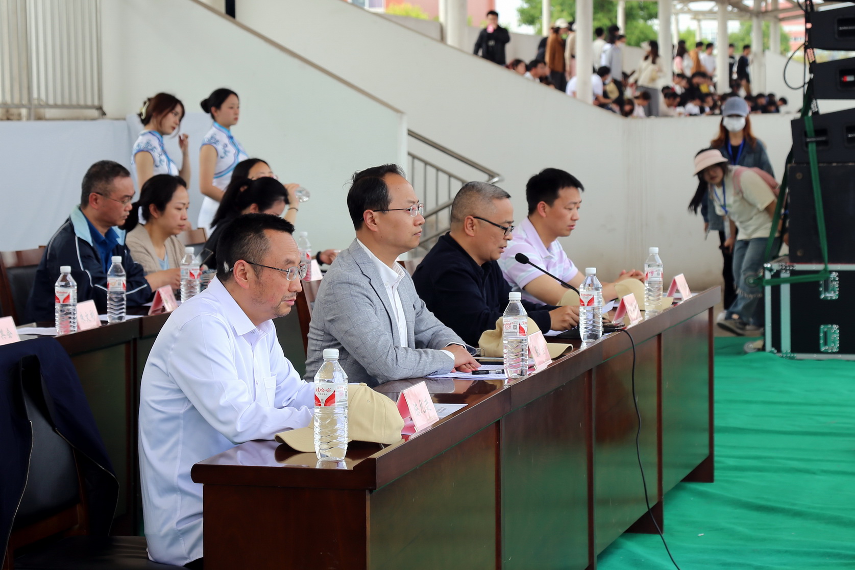 2024年4月10日下午,阳光明媚,彩旗飘飘,beat365英国官方网站第18届春季田径运动会开幕式在学校运动场举行。学校领导张佳、陈元进、张学河、封家福出席开幕式,全校师生齐聚一堂,共同见证这一激动人心的时刻。