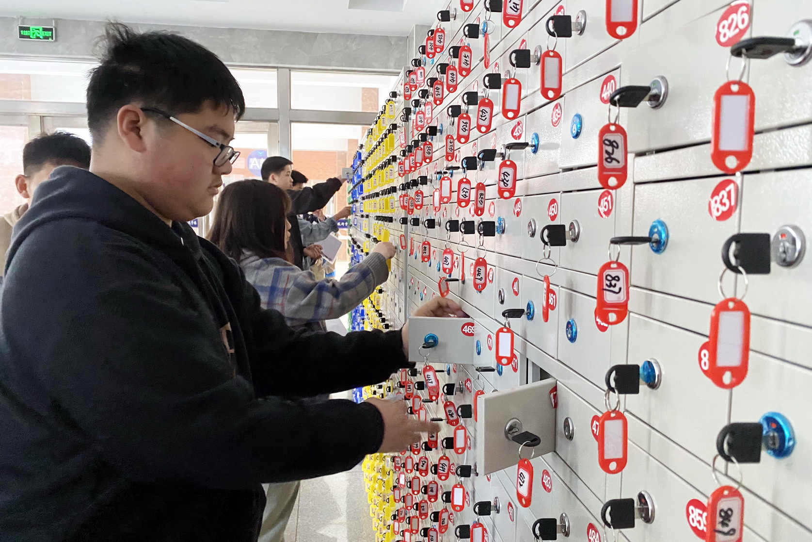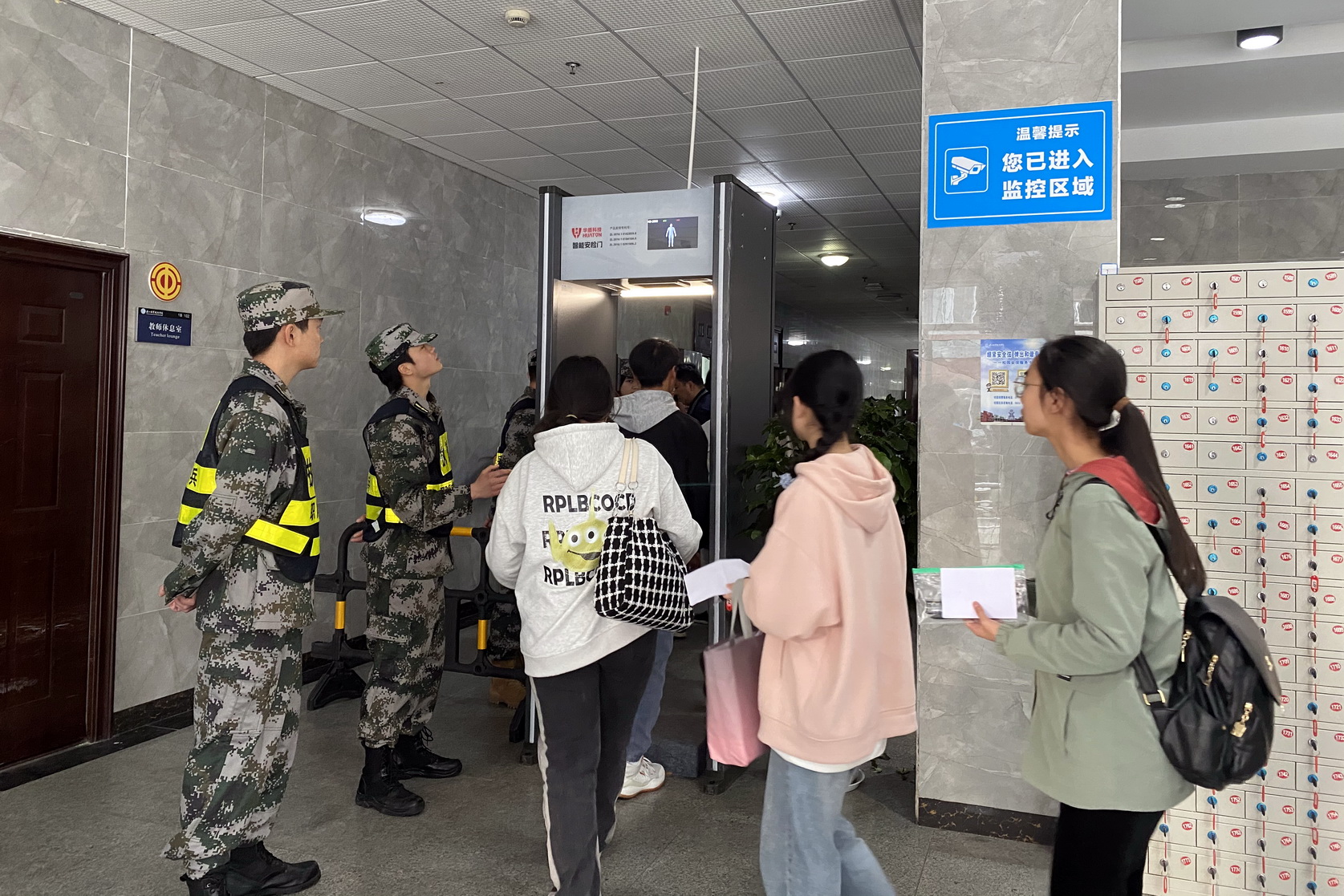 直至8点,考点内工作人员开始陆续分批组织考生们进入考场,在工作人员的引导下,考生先将手机、充电器等电子产品放入手机柜,再正常通过“智能安检门”、放置好书包后进入考场,现场一切安排得井井有条。待开考铃响起,考生们开始答题,监考老师严格执行考试规则,确保考试过程严谨、公正进行。