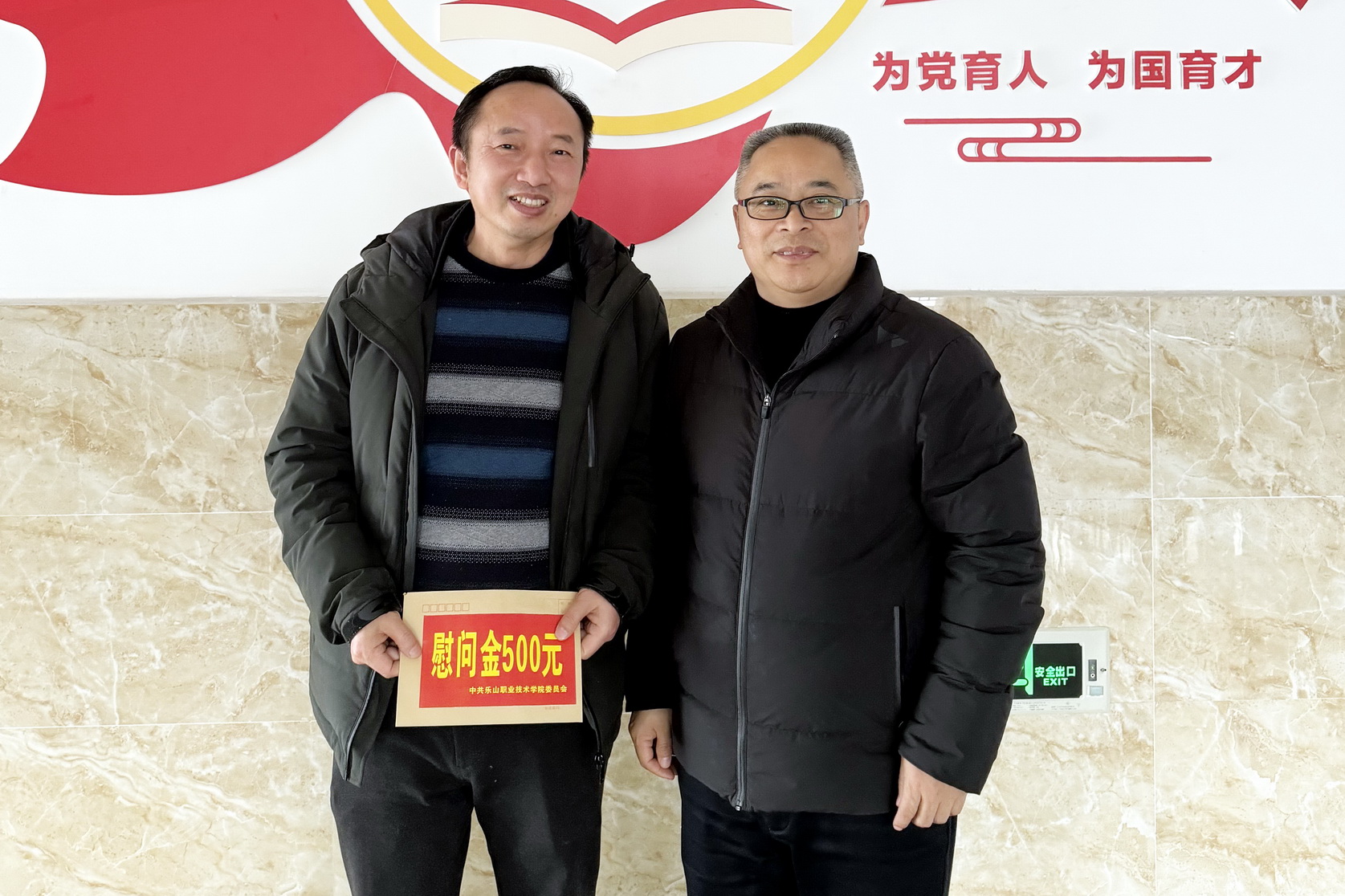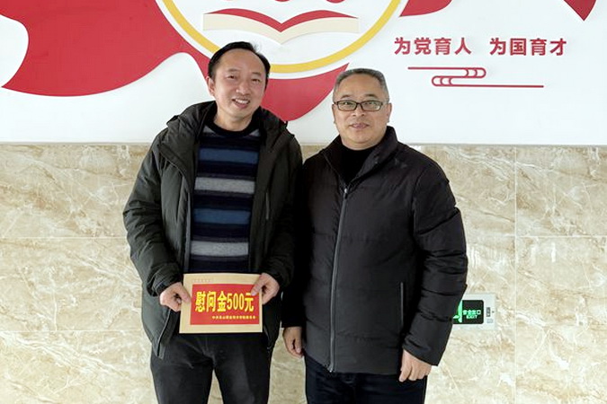 张学河为鲁老师送上了慰问金,并详细了解鲁老师的生活状况和困难情况,鼓励他要保持乐观积极的心态,勇敢面对生活中的困难。对鲁老师为学校和党组织作出的贡献表示感谢。