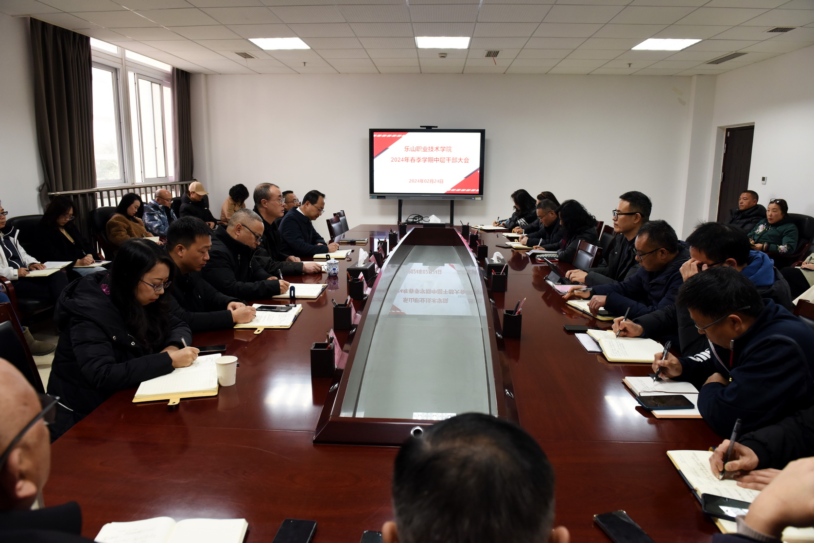 2月24日上午,学校中层干部大会在行政楼332会议室召开。学校校长刘忠,党委副书记张佳,党委委员、副校长陈元进、张学河、封家福、周芹,各部门、教辅单位、二级学院负责同志参加会议。