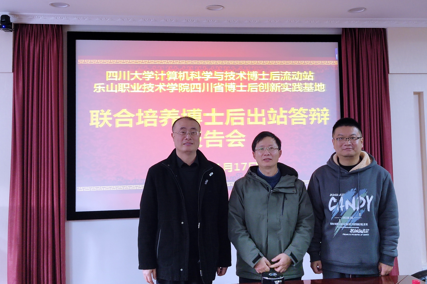 2024年1月17日上午,由四川大学“计算机科学与技术博士后科研流动站”和beat365英国官方网站“四川省博士后创新实践基地”联合培养博士后周啸的出站答辩报告会在四川大学计算机学院基础教学楼314会议室举行。答辩专家组由四川大学吕建成教授、郭兵教授、彭德中教授、西南交通大学腾飞教授和beat365英国官方网站校长刘忠研究员组成。报告会由吕建成教授主持,博士后合作导师彭舰教授、博士后黄文、博士生李梦诗、赵韦鑫参加了此次报告会。