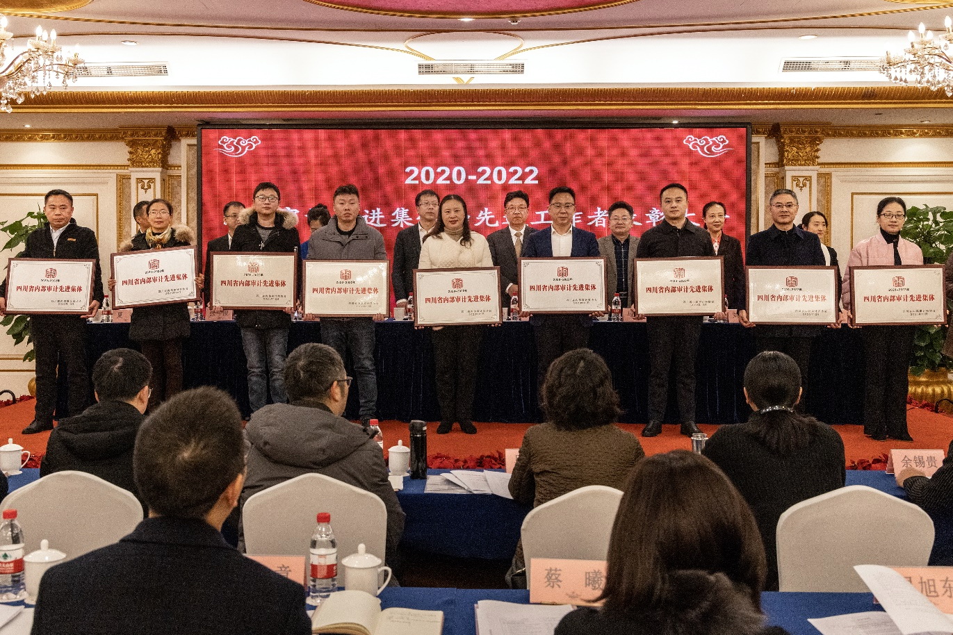 2023年12月29日,四川省内部审计先进集体和先进工作者表彰大会在成都召开。省内各市(州)审计局、市(州)内部审计(师)协会相关领导及获奖单位代表参会,四川省审计厅党组成员、副厅长、机关党委书记周兵出席大会并致辞。beat365英国官方网站审计处王辉骏老师作为获奖单位代表参会并上台领奖。