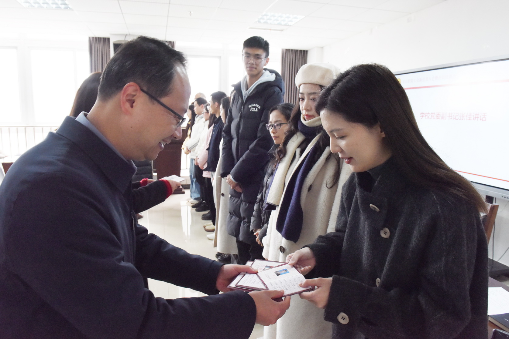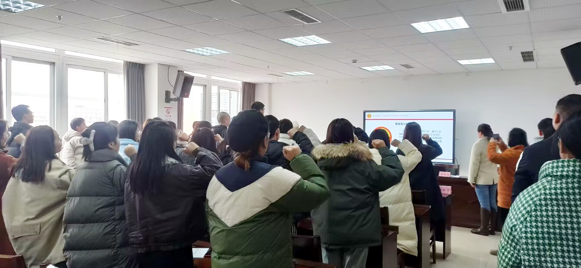 会上,为新会员举行了入会宣誓仪式,李晓婷带领全体新会员进行了庄严的入会宣誓,张佳、黄晓莉、郭蓬为新会员颁发工会会员证和会员手册。此次活动切实增强新入会会员身份认同,让其获得一份光荣感、使命感和归属感。