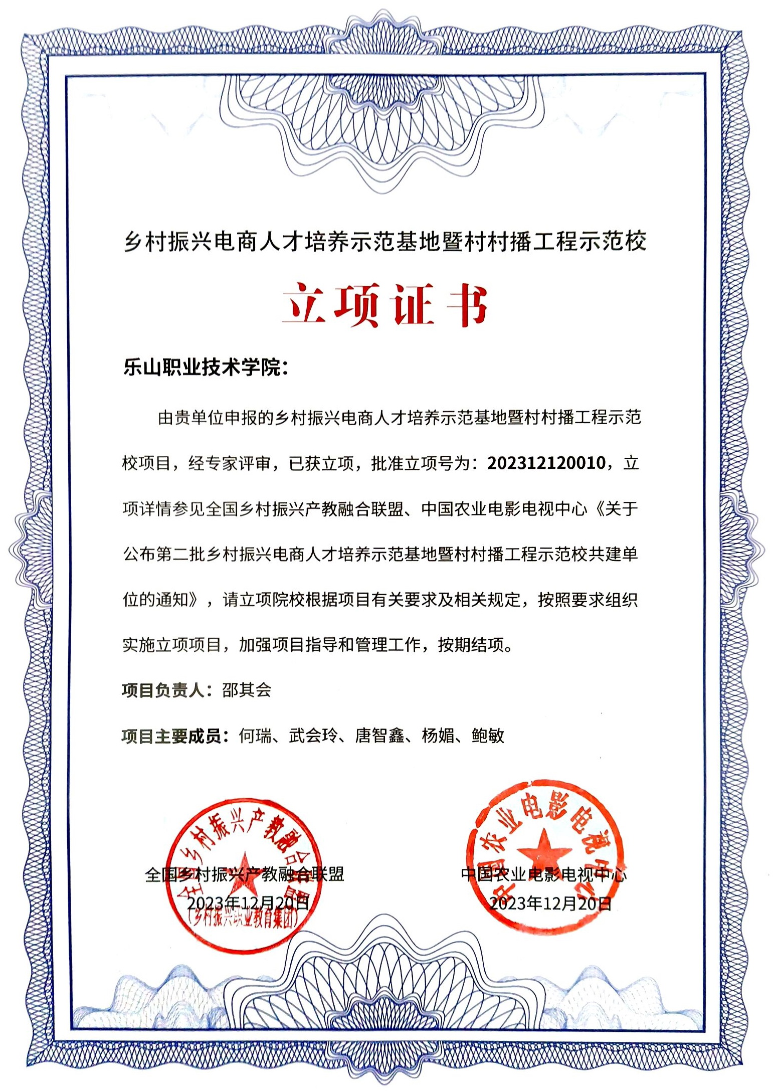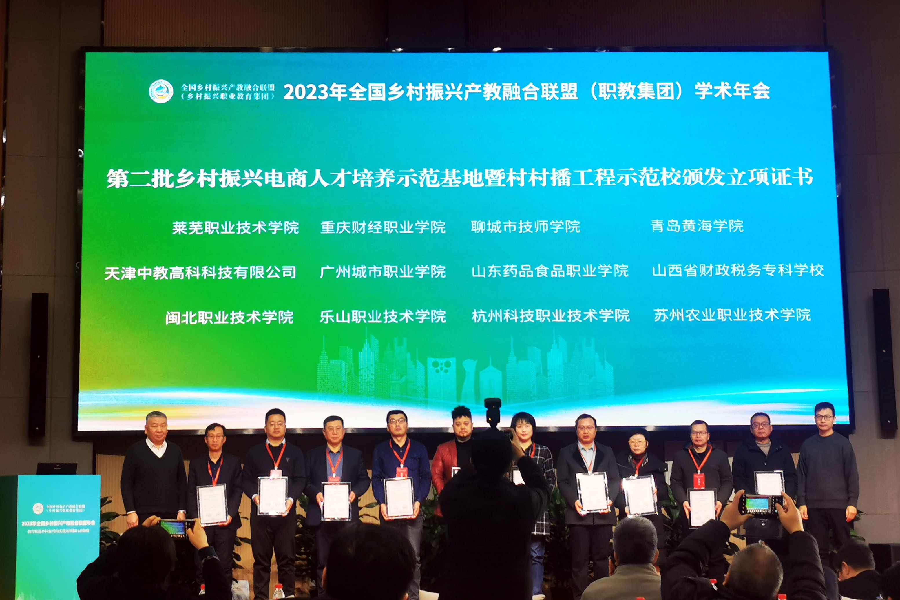 本次年会颁发了第二批乡村振兴电商人才培养示范基地暨村村播工程示范校立项证书。会前,联盟对第二批乡村振兴电商人才培养示范基地暨村村播工程示范校申报学校进行了实地考察、专家评审和答辩,beat365英国官方网站成功申报立项。