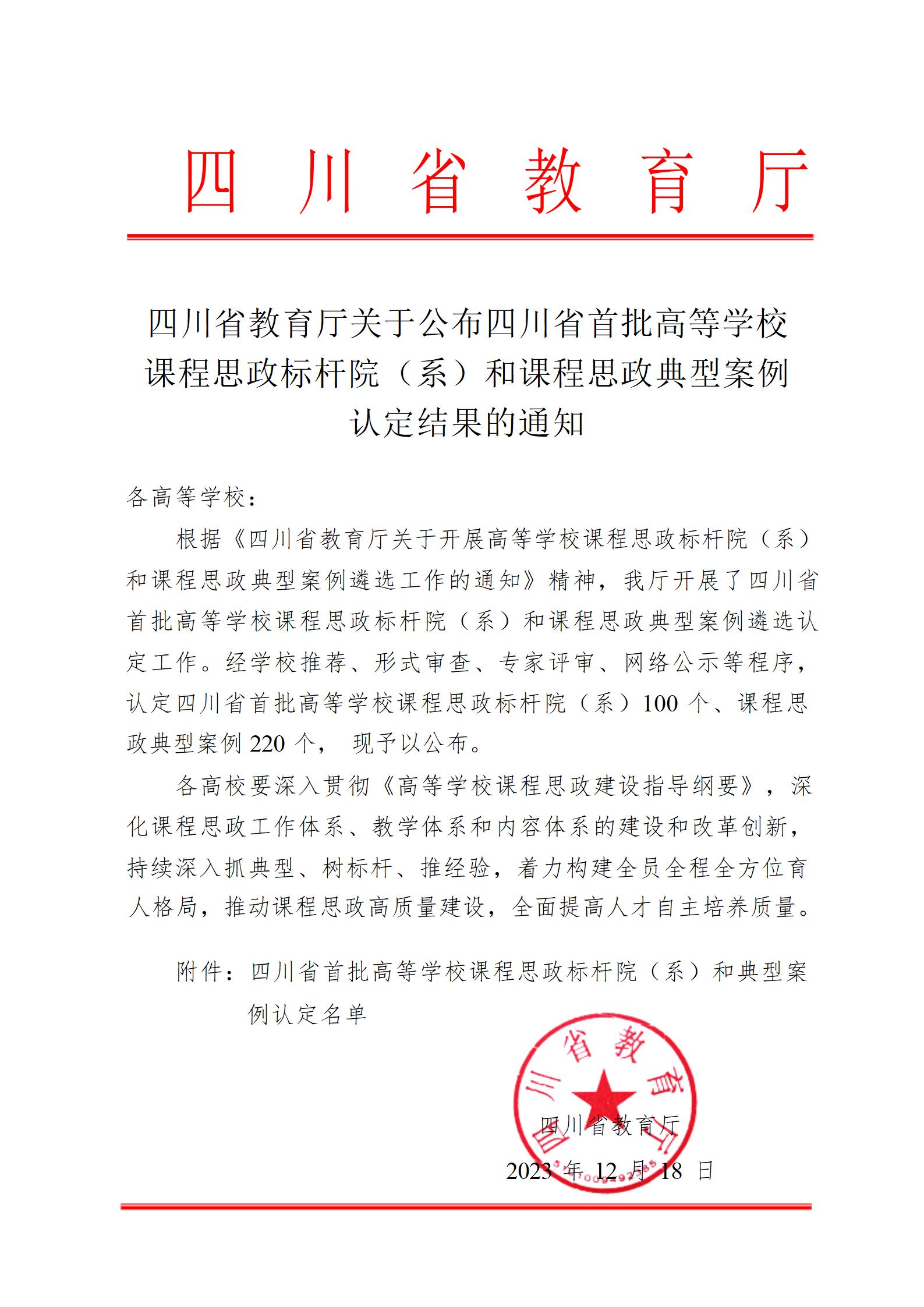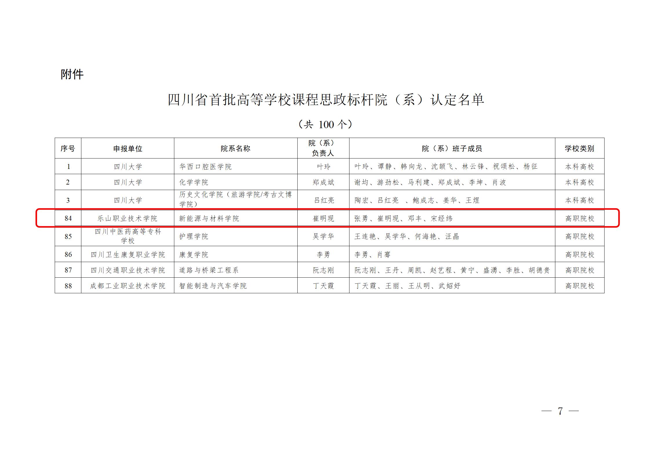近日,四川省教育厅公布四川省首批高等学校课程思政标杆院(系)和课程思政典型案例认定结果,学校新能源与材料学院被认定为课程思政标杆院(系),《晶体硅制备技术》《老年护理》2个案例被认定为课程思政典型案例。