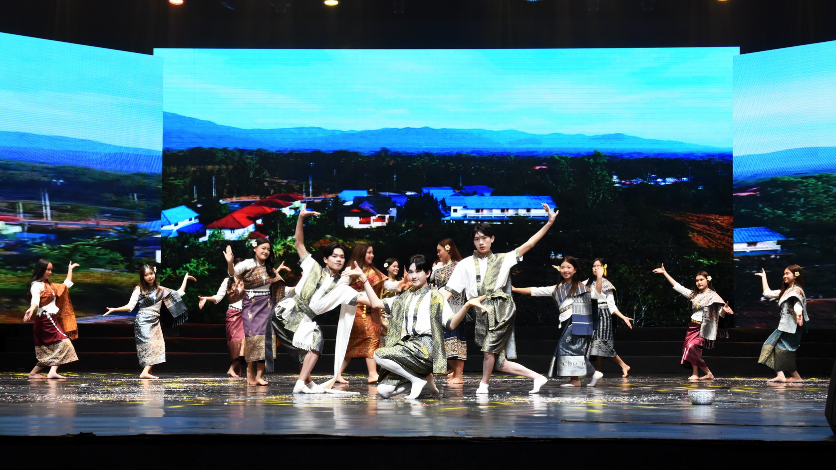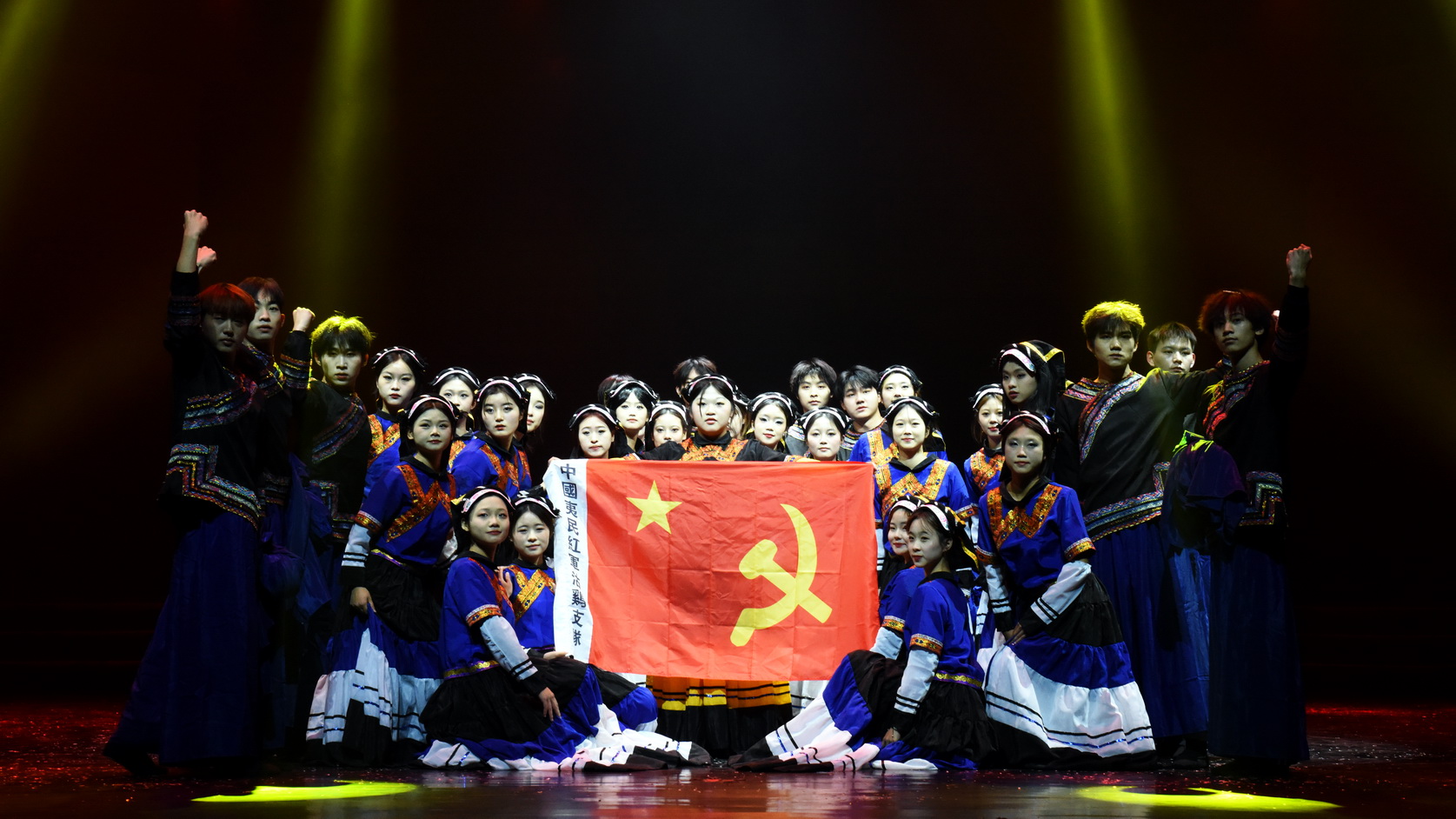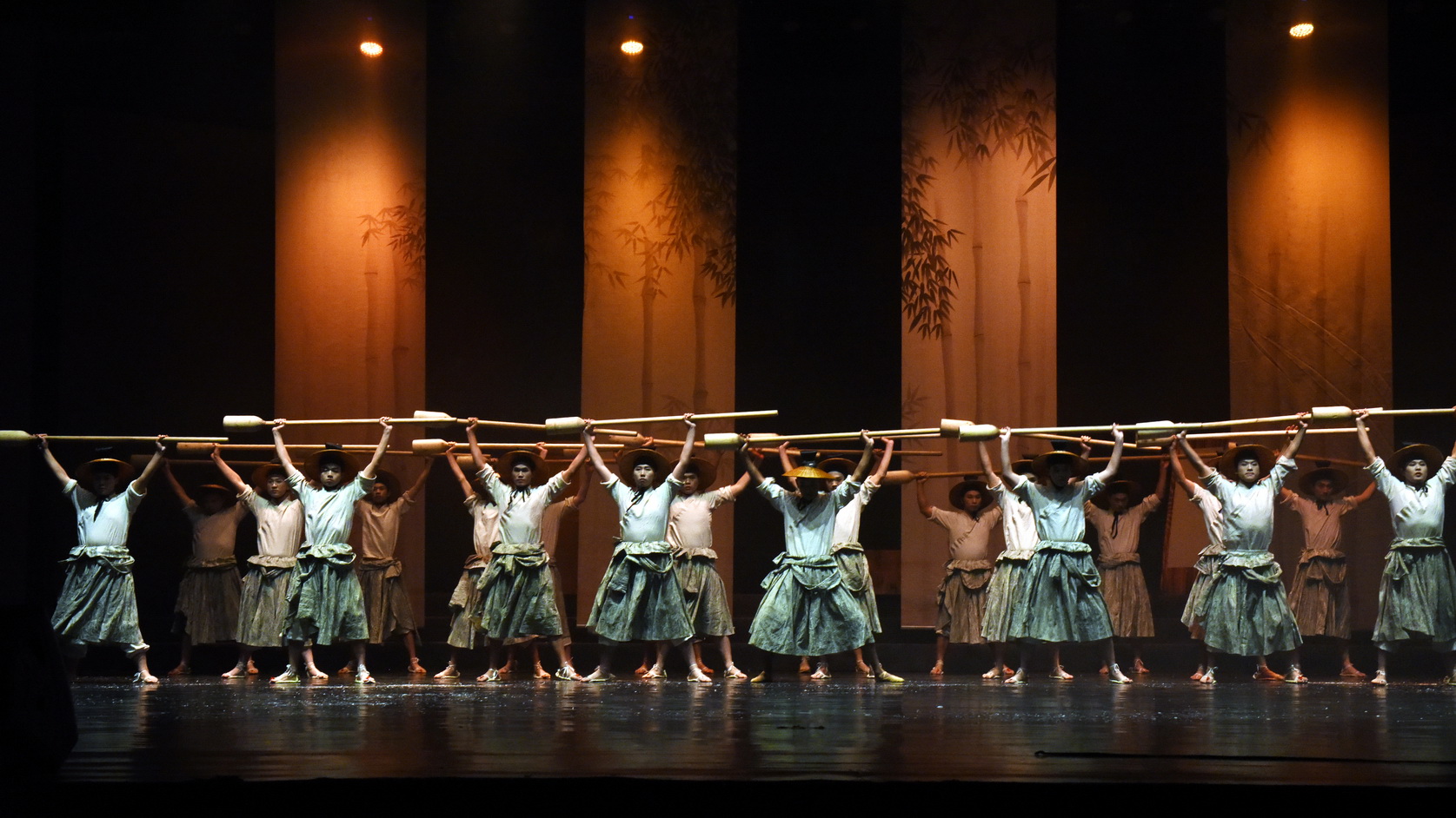 学校在四川省第十届大学生艺术展演活动中原创获奖的节目《春杵声声纸乡行》,以国家非物质文化遗产项目"夹江竹纸制作技艺"为素材,在铿锵有力的竹麻号子中,演绎了华夏儿女如竹般坚韧不屈的意志品格。