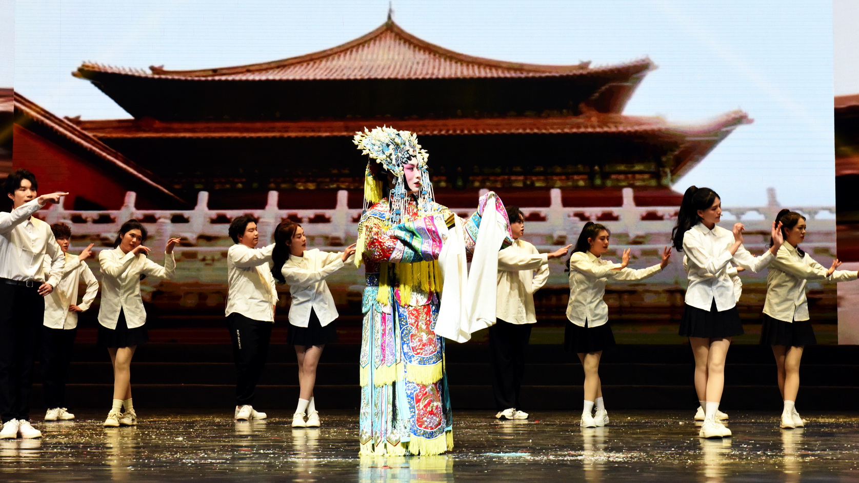 国际学生们也为大家带来了《携手共寰宇》,节目集走秀、舞蹈、合唱于一体,灵动的身影,起步扬手,回眸旋踵,直抵人心。在轻盈的衣袖,与悠长的音乐之间,尽展异域风情,一曲《我的中国心》博得全场的热烈欢呼。