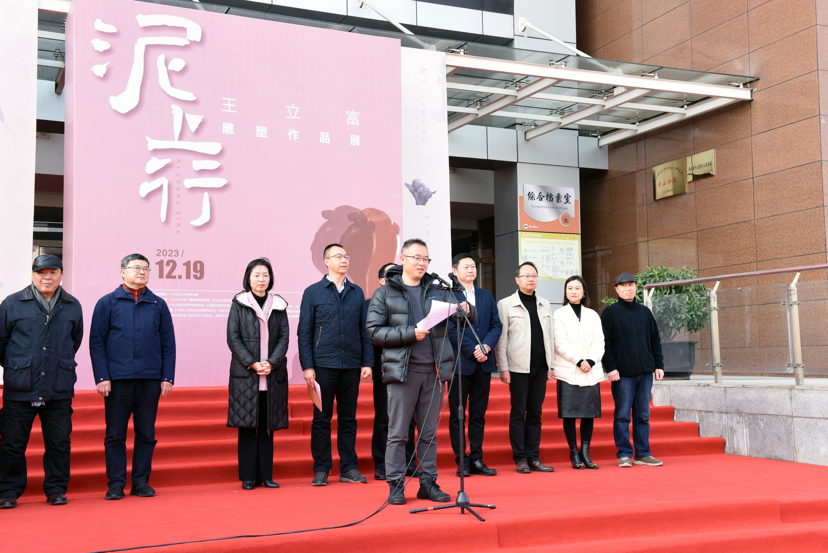 雷建新在致辞中提到,王立富先生始终坚持以人民为中心的创作理念,怀揣一颗初心,在雕塑的熔炉里锻造自己,十年磨一剑,卅载不停步,完成了 “泥上行”系列雕塑作品,展现了工艺美术大师的高超技艺。他要求,全市艺术工作者要认真抓好习近平总书记关于文艺工作重要论述的贯彻落实,进一步坚定文化自信,坚持以人民为中心的创作导向,把高质量作为艺术创作的生命线,努力为时代画像、为人民放歌,用情用力讲好中国故事、乐山故事。要打破思维定式,勇于创新创造,在把握乐山特色、时代特色、艺术特色中凸显乐山文化的独特性,在“顺时”“顺势”“人无我有”中出奇制胜,创作更多优秀艺术作品奉献给人民,满足人民日益增长的精神文化需求。