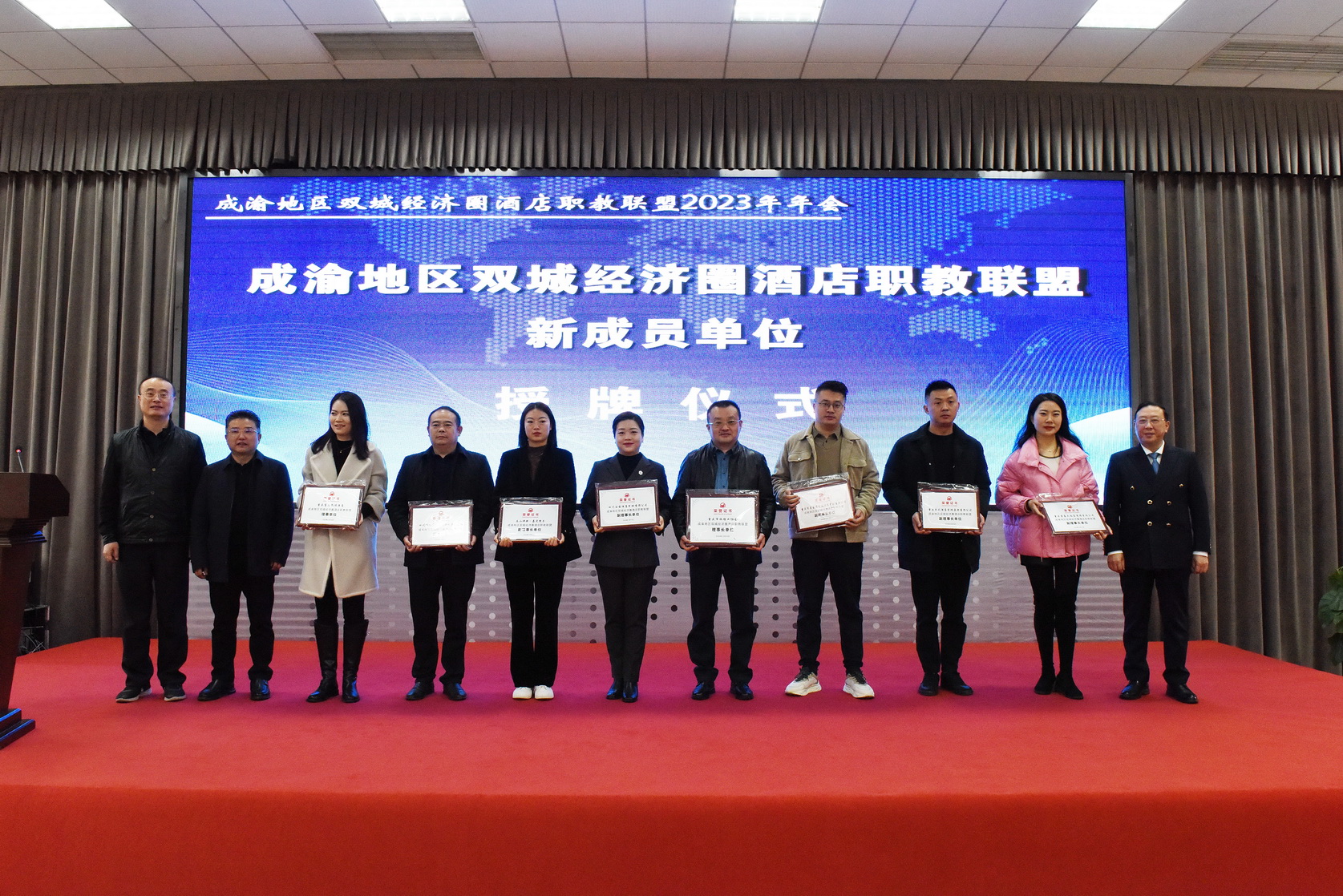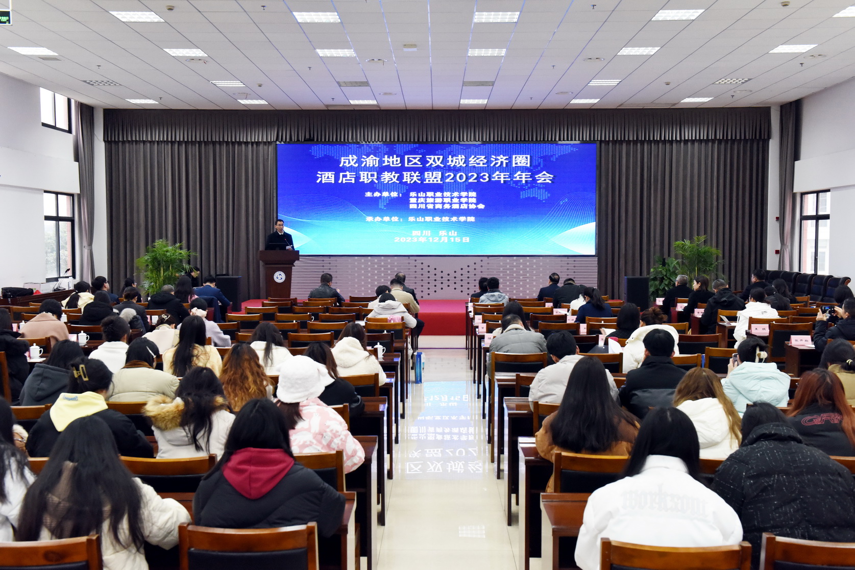 12月15日,成渝地区双城经济圈酒店职教联盟2023年年会在beat365英国官方网站召开。beat365英国官方网站校长刘忠,重庆旅游职业学院党委书记熊斌,四川省商务酒店协会会长张宏图,重庆旅馆业协会党支部书记、会长钟声,beat365英国官方网站党委委员、副校长张学河出席会议。来自成渝地区相关院校、企事业单位、行业协会等30余家单位领导、专家、企业家代表及beat365英国官方网站旅游管理专业群师生代表等120余人参加会议。会议由beat365英国官方网站文化旅游学院院长杨帅主持。
