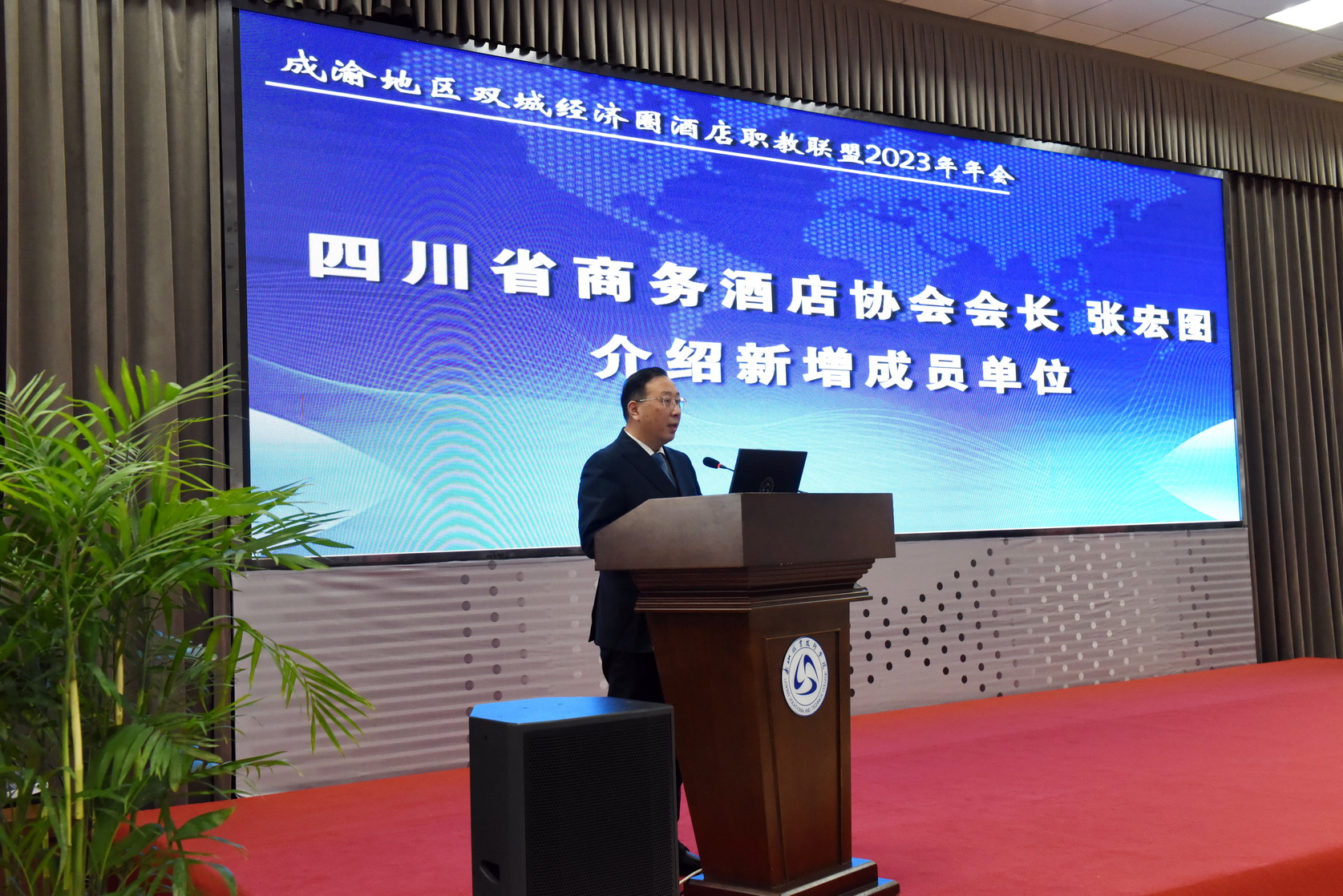 刘忠代表学校致欢迎辞。他表示,成渝地区双城经济圈建设是习近平总书记亲自谋划、亲自部署、亲自推动的重大国家战略。成渝地区双城经济圈酒店职教联盟成立以来,为加强成渝区域协同发展,推动技术技能型人才培养起到了积极的作用。本次年会的召开,将进一步推动落实成渝地区双城经济圈建设教育协同发展框架协议内容,助力多方参与、共生共荣的职业教育合作平台建设。