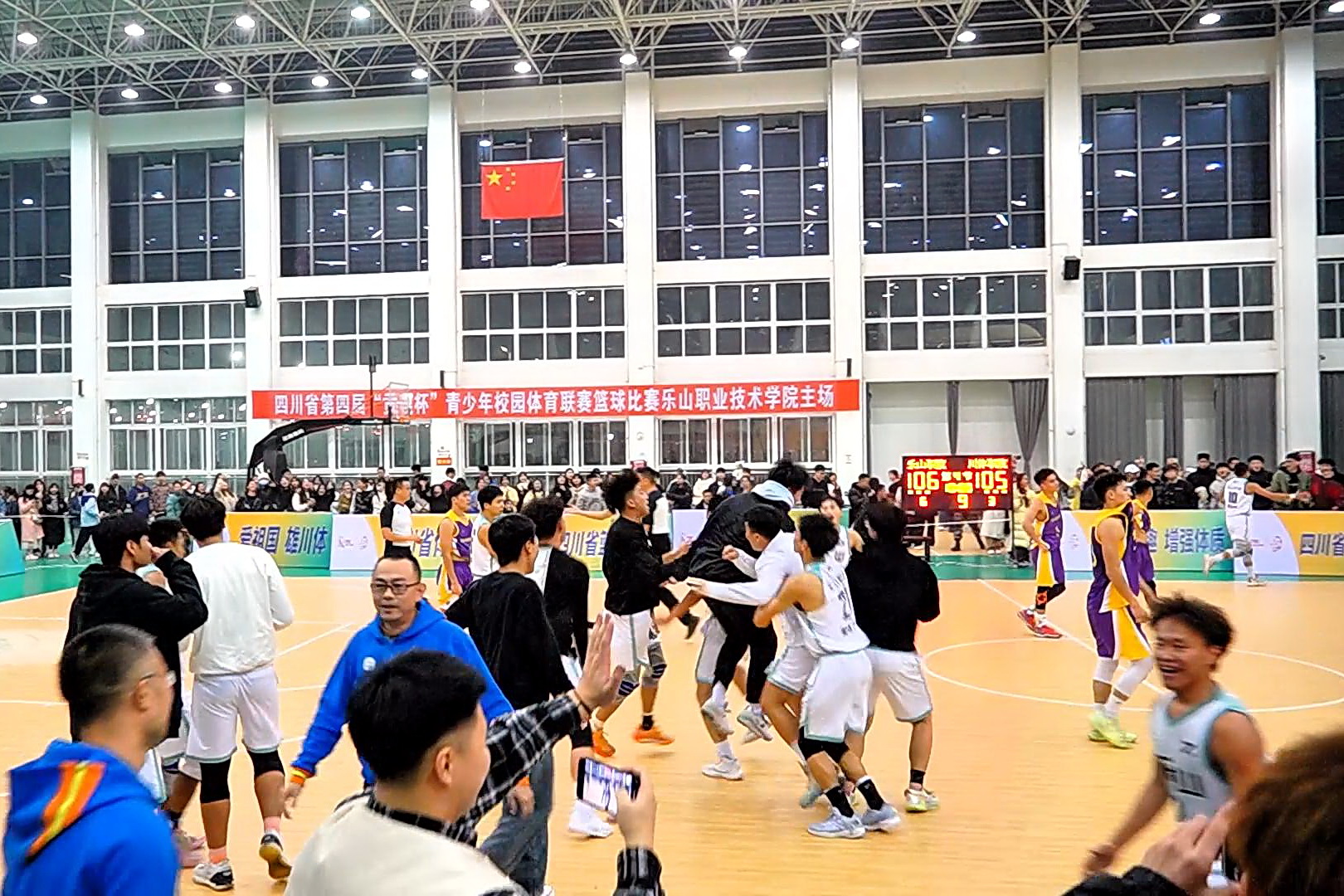 比赛中,双方教练精心安排战术,双方队员全力发挥水平,现场主持人激情解说,观众不时传来热烈的喝彩。最终乐山职院以106:105险胜四川体育职院,成功晋级淘汰赛。