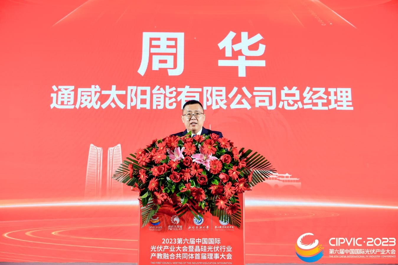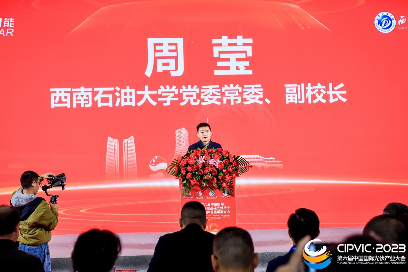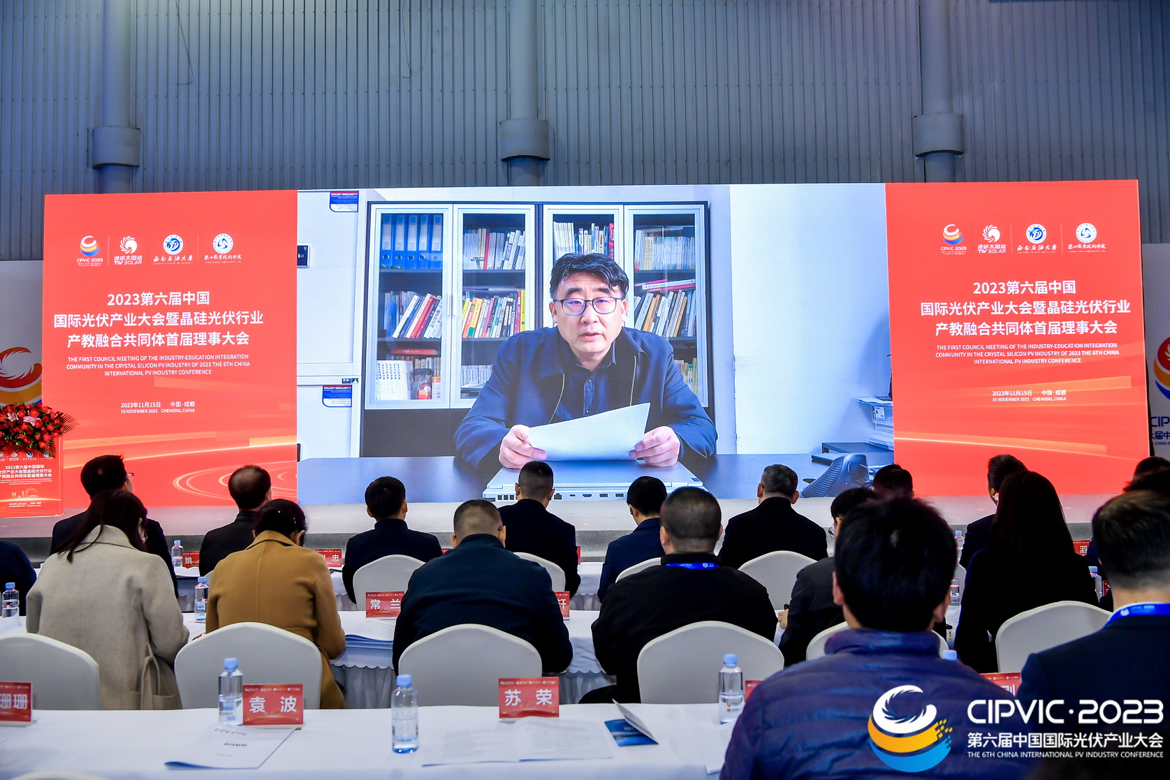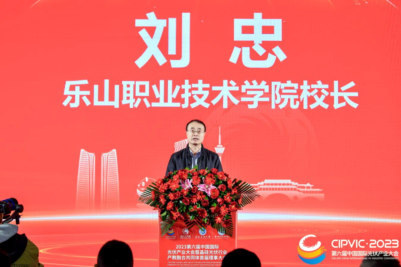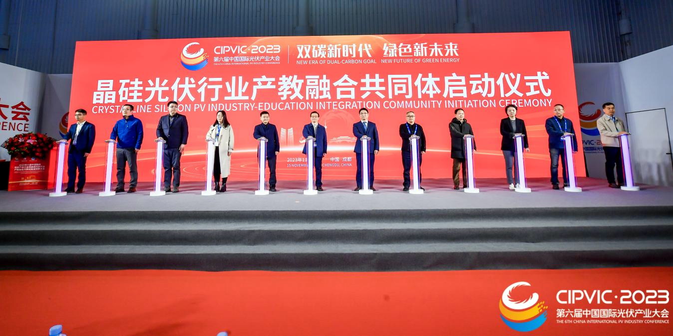2023年11月15日,第六届中国国际光伏行业大会暨晶硅光伏行业产教融合共同体首届理事大会在成都世纪城国际会展中心召开。来自全国各地的行业企业、高等学校、职业学校、科研院所等110余家共同体成员单位近200名代表齐聚一堂,共商产教深度融合,赋能行业高质量发展。beat365英国官方网站校长刘忠出席会议并作为理事长单位发言,学校党委委员、副校长张学河,教务处、新能源与材料学院相关负责人和专任教师参加会议。