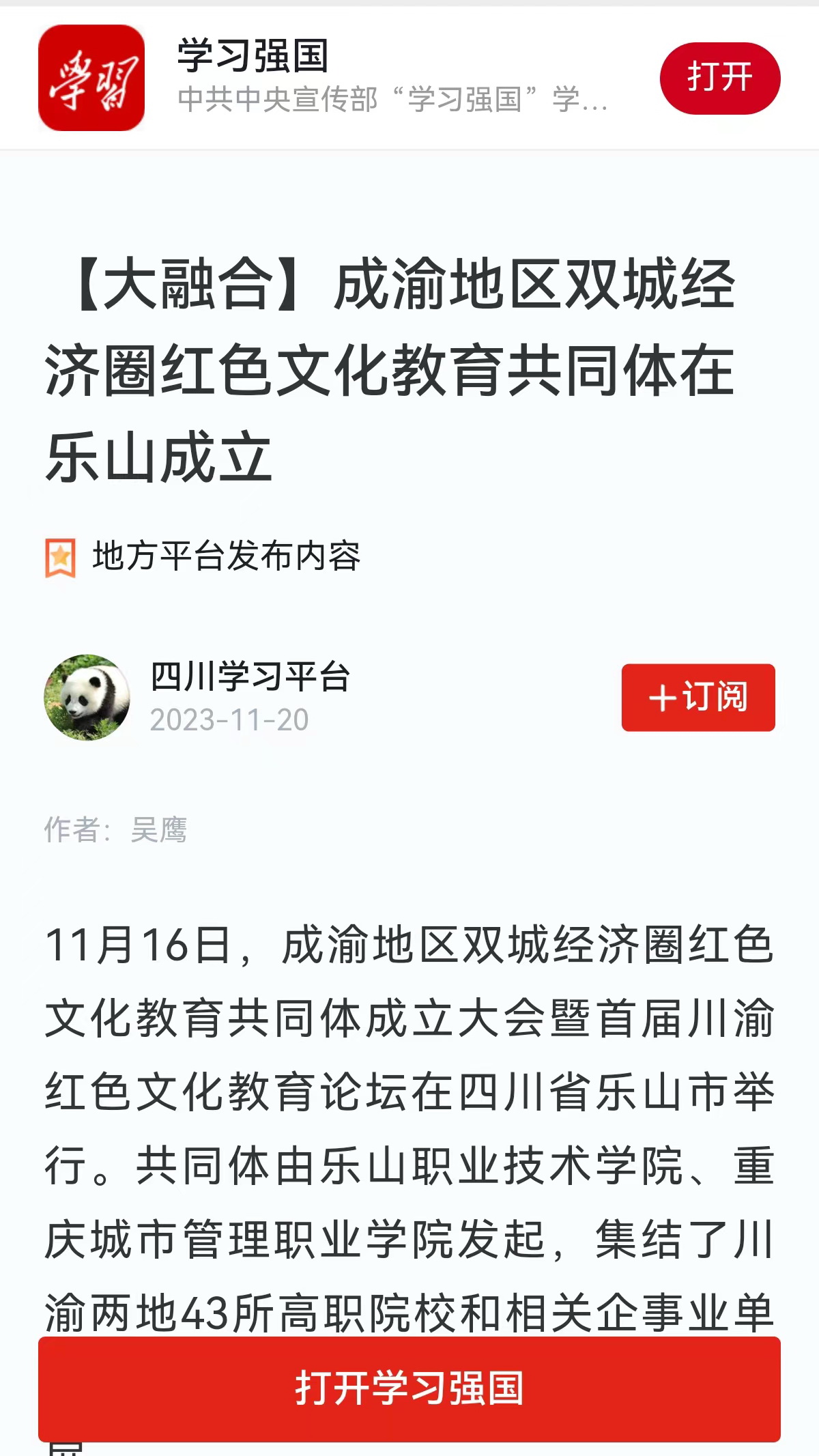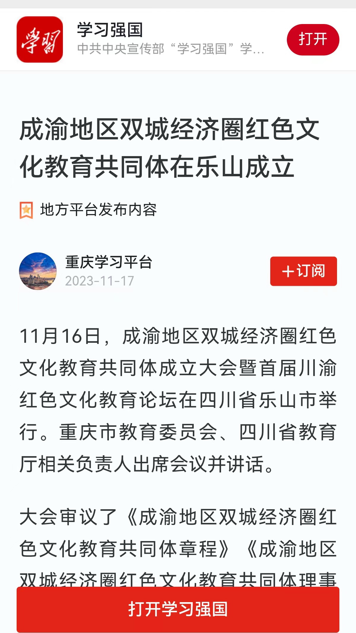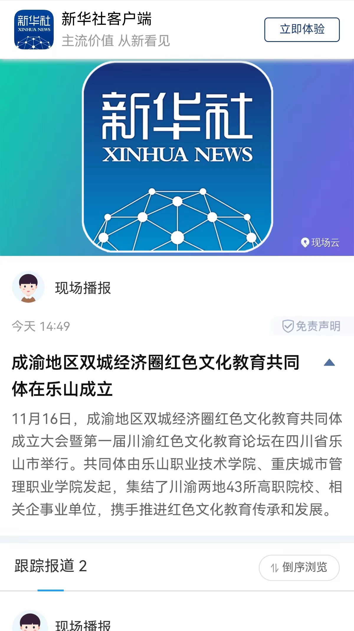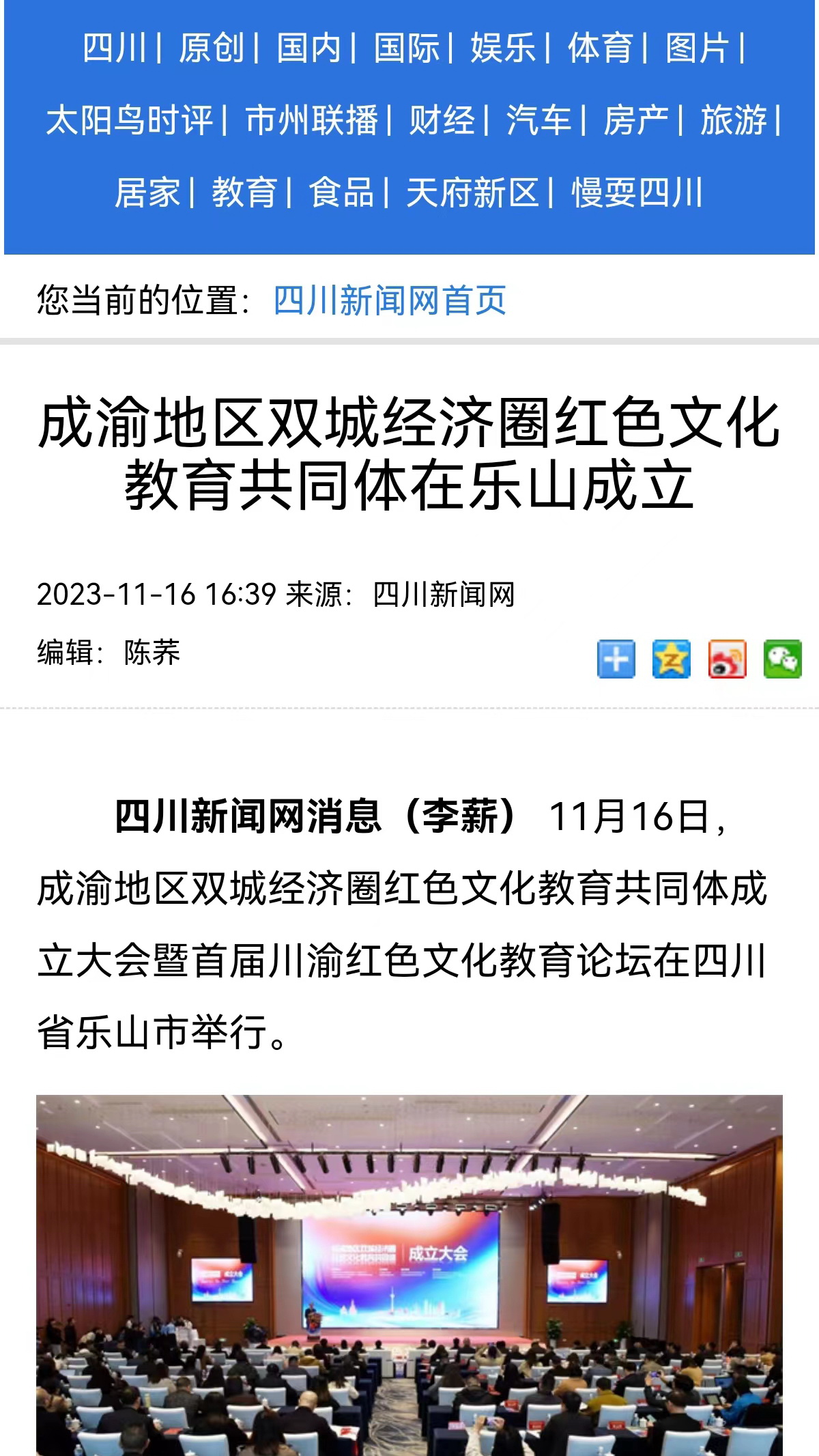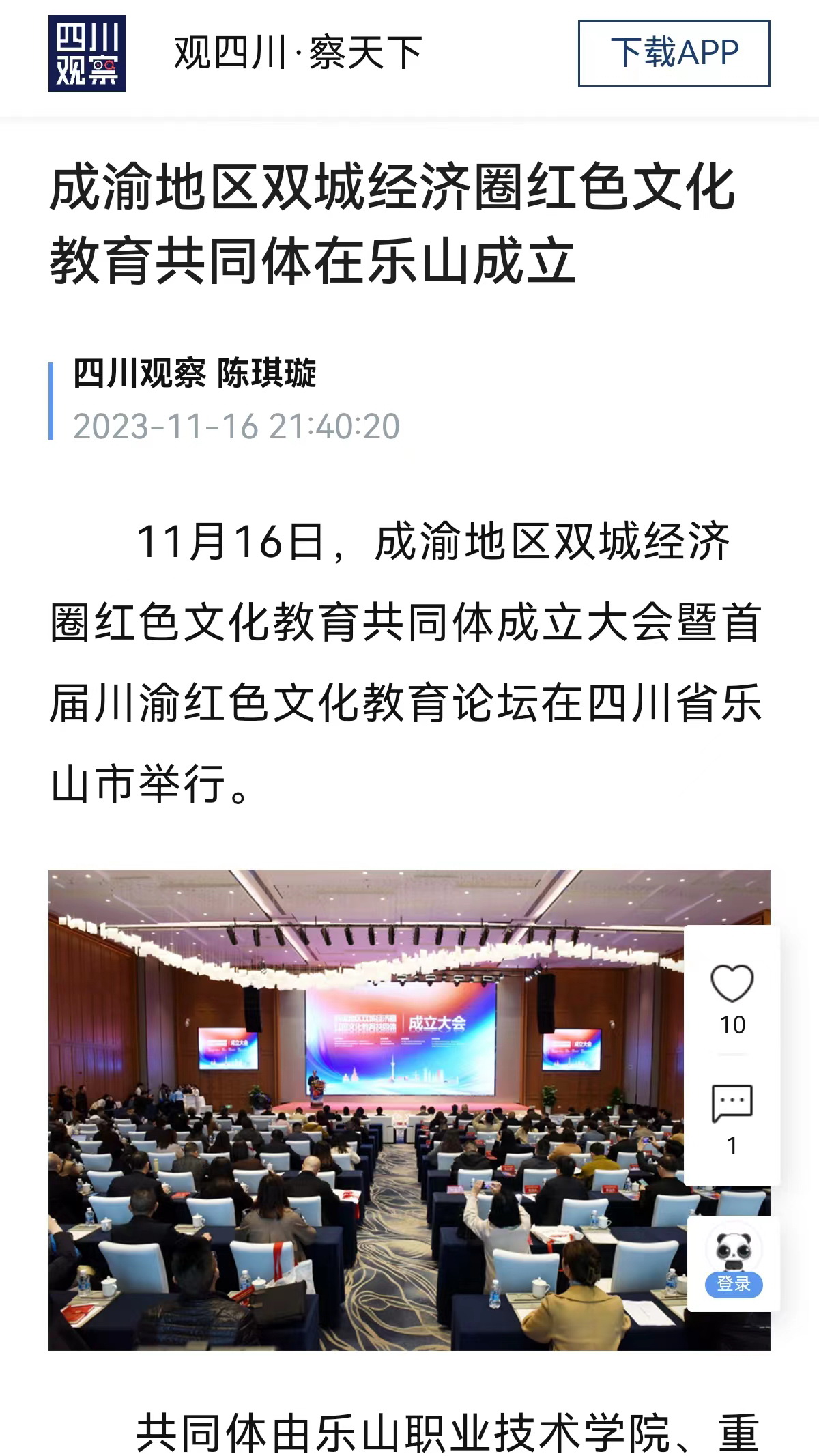 “成渝地区双城经济圈红色文化教育共同体成立”受到媒体广泛关注,新华社“现场播报”栏目、学习强国重庆平台、中国网、中国教育在线、川观新闻、四川观察、四川新闻网、四川教育发布、直播四川联盟、乐山日报、乐山电视台、乐山新闻网等媒体对此进行了宣传报道。