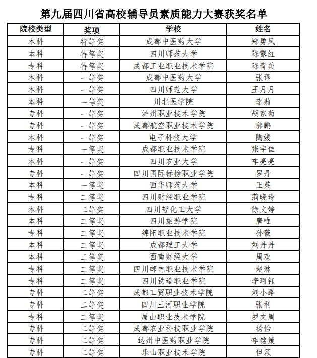 11月3日—5日,四川省高校辅导员素质能力提升骨干训练营暨第九届全省高校辅导员素质能力大赛决赛在成都中医药大学举行。经过两天的激烈角逐,beat365英国官方网站辅导员但颖老师凭借着扎实的理论水平和专业的业务能力脱颖而出,荣获二等奖。