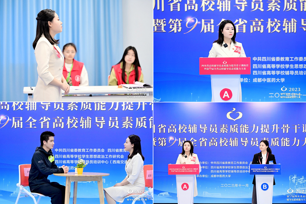 本次大赛由中共四川省委教育工作委员会、四川省教育厅主办,四川省高等学校学生思想政治工作研究会、四川省高等学校辅导员培训中心(西南交通大学)协办,成都中医药大学承办。来自全省47所本科院校、59所高职高专院校的125名辅导员同场竞技,拉通排名。大赛全面对标国赛标准进行,设笔试、谈心谈话、案例研讨三个环节,对参赛选手的理论水平、职业素养、逻辑思维、语言表达、临场应变等综合素质能力进行全面考察。所有选手全程参与,每一个环节都要接受心理和能力素质的双重挑战。