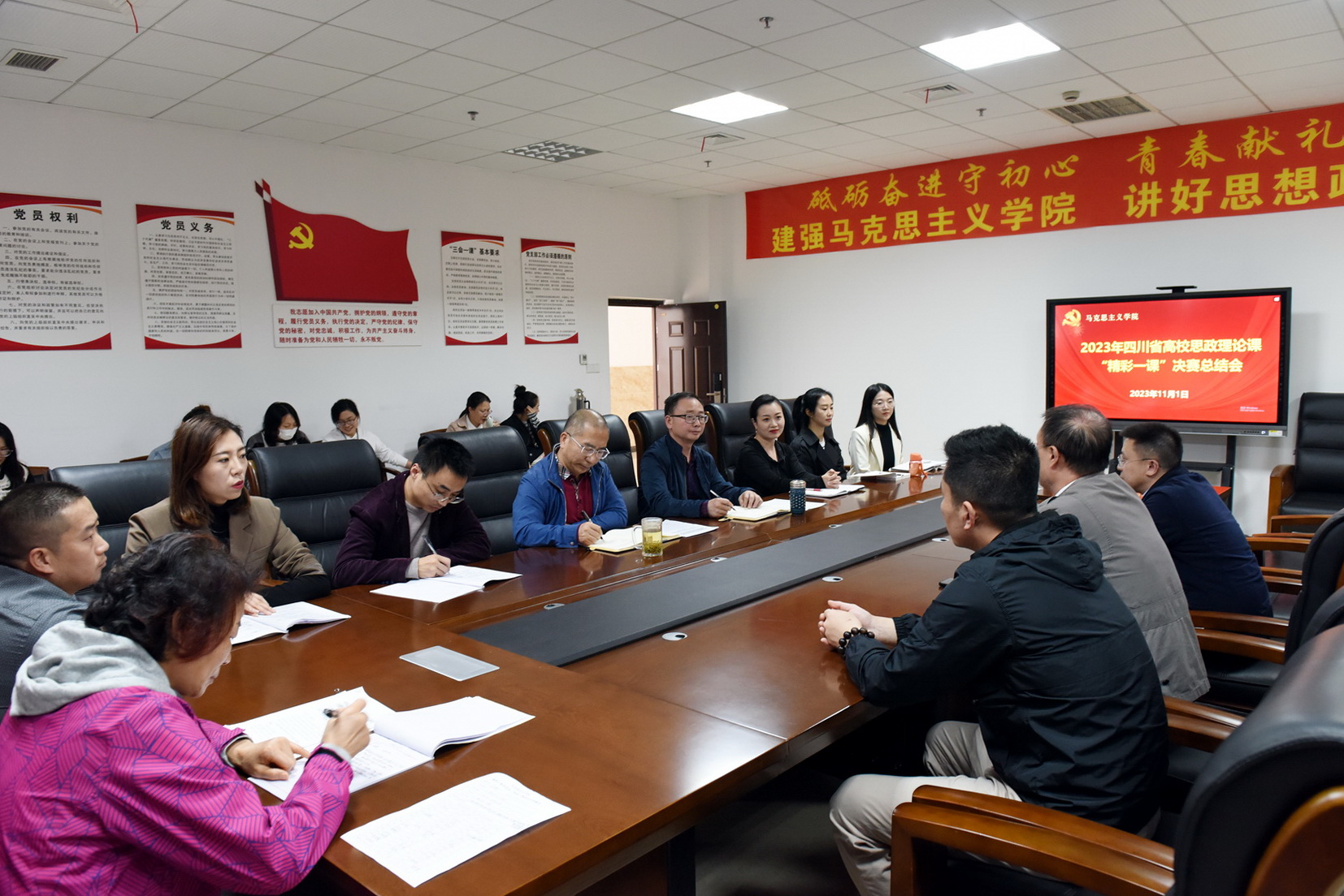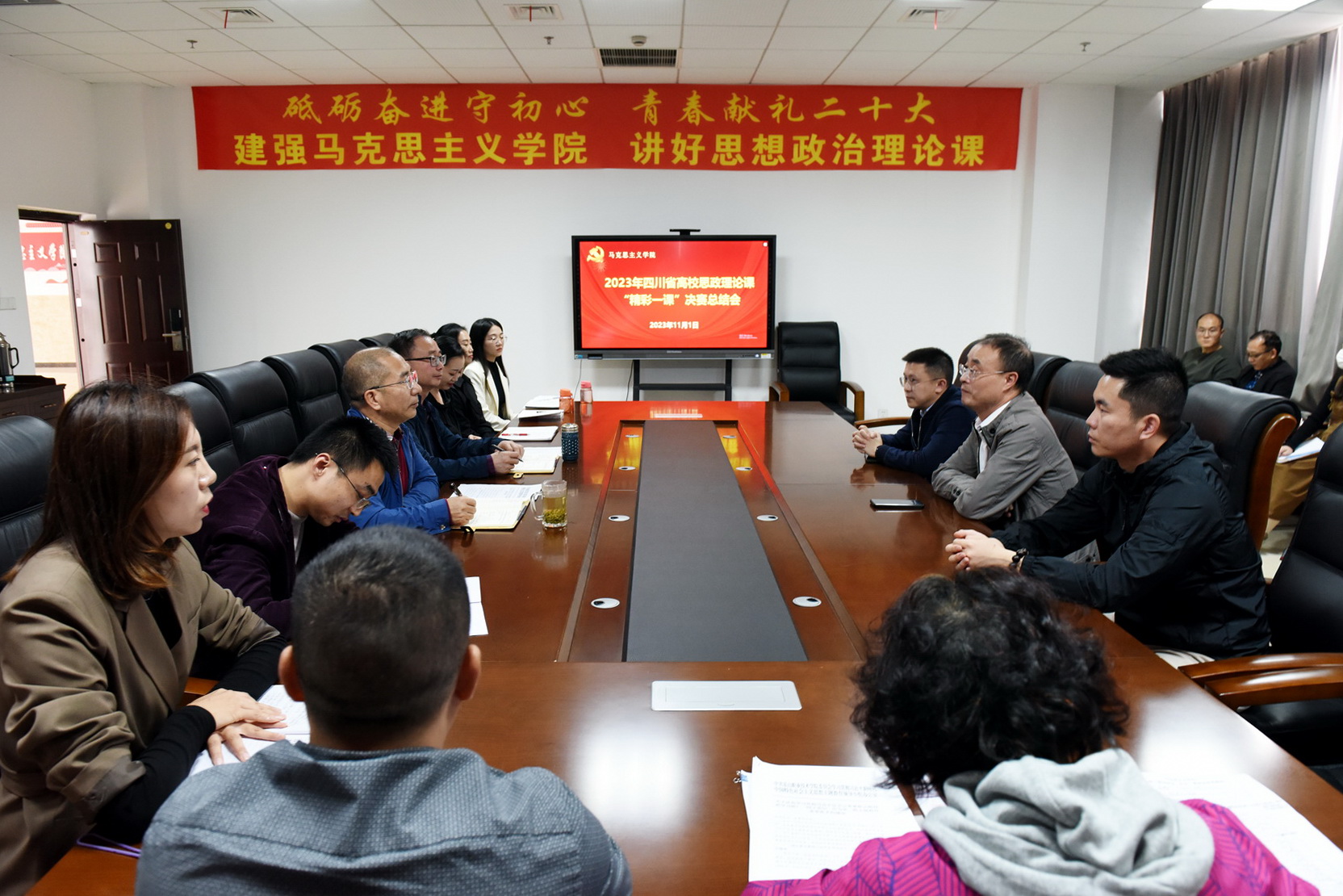2023年11月1日下午,beat365英国官方网站马克思主义学院在教研楼410会议室召开2023年四川省高校中青年教师“精彩一课”讲课比赛总结会,校长刘忠出席会议,党委宣传部(统战部)负责人,党政办和宣传部相关人员,马院全体教职工参会。马院主持工作副院长徐志红主持会议。