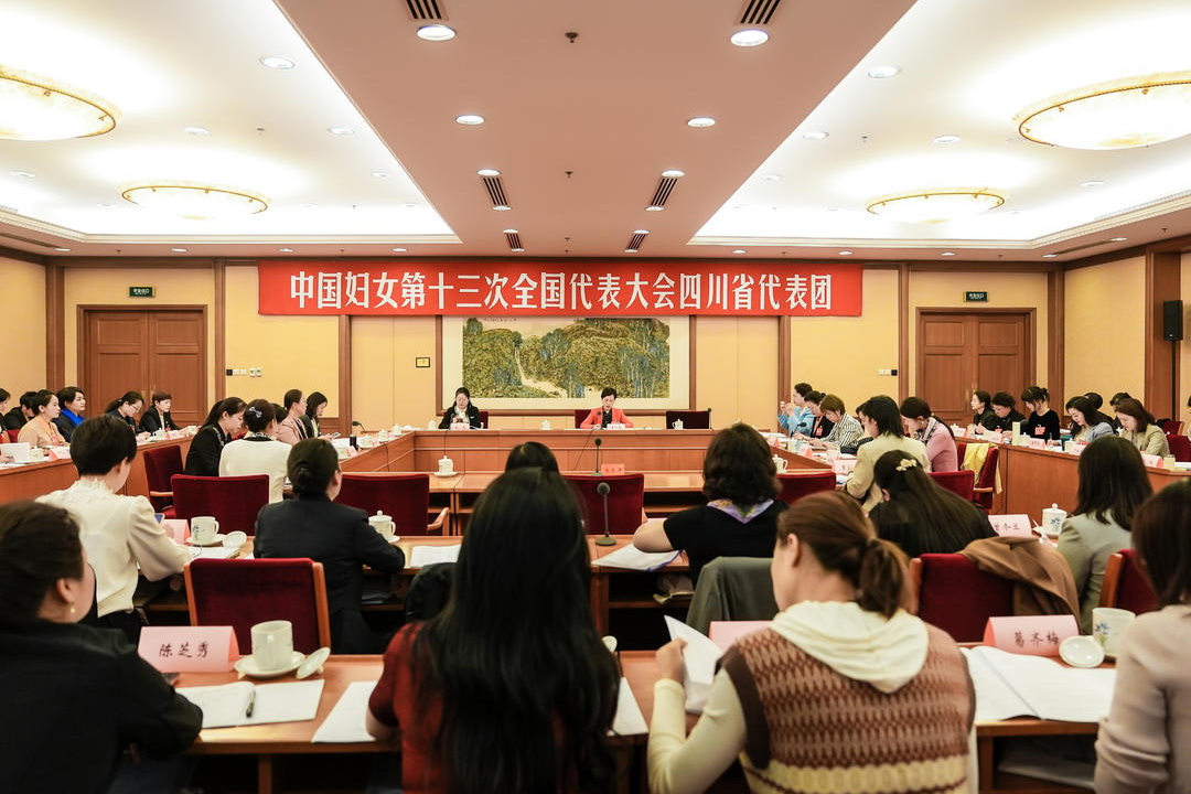 大会期间,四川代表团共召开了四次会议,深入学习习近平总书记关于妇女儿童和妇联工作的重要论述,学习领会党中央致辞的丰富内涵和重大意义,认真审议了中国妇女第十三次全国代表大会报告。姚佳秀代表踊跃发言:新时代女性在各行各业担负新使命,需要立足岗位展现自尊、自信、自立、自强新形象,需要聚焦群众工作彰显引领力、组织力、服务力,需要投入家庭教育弘扬爱国爱家、相亲相爱、向上向善的家庭文明新风尚。作为一名高校思政教师,将始终坚持立德树人、爱生如子,与党同行、跟党奋进,带头做好社会主义核心价值观的践行者,不断向“大先生”学习,充分发挥妇女代表的先进作用,帮助学生树立正确的“三观”,努力成为像张桂梅老师一样的优秀教师。