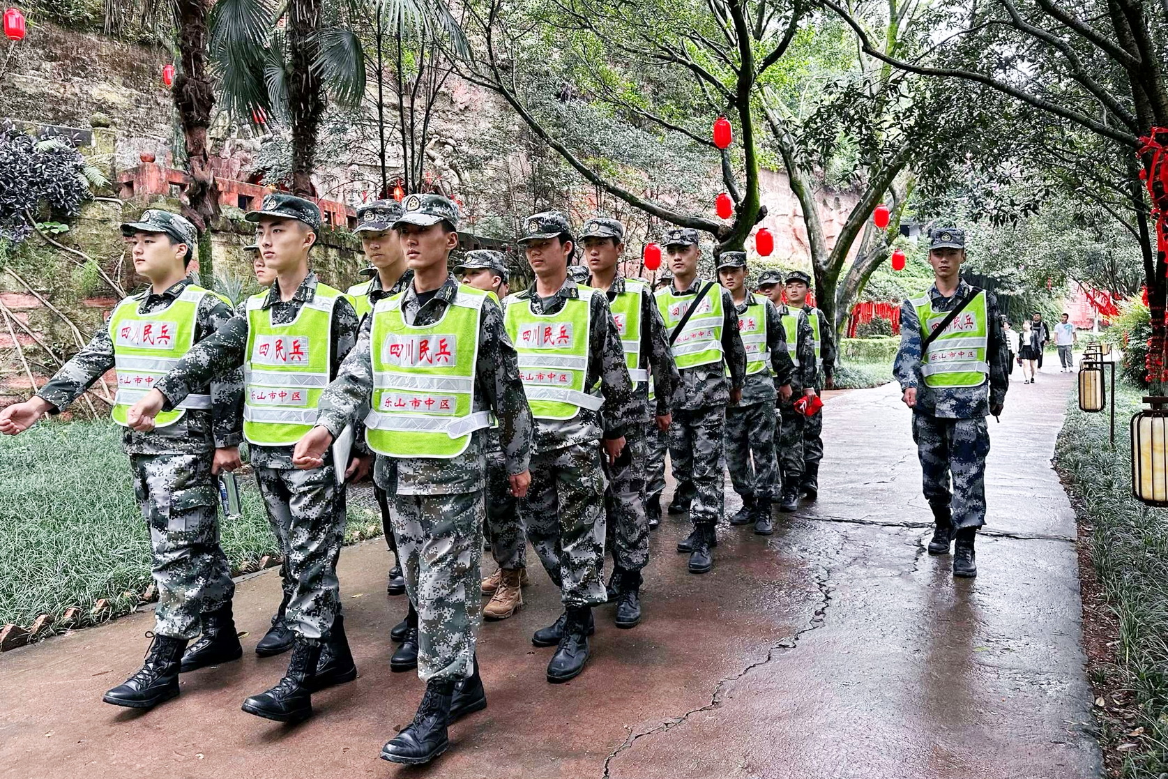 受乐山市中区武装部指派,beat365预备役民兵连51名民兵参加“国庆黄金周”大佛景区联合执勤,全力协助相关部门完成景区治安管控及其他综合勤务。