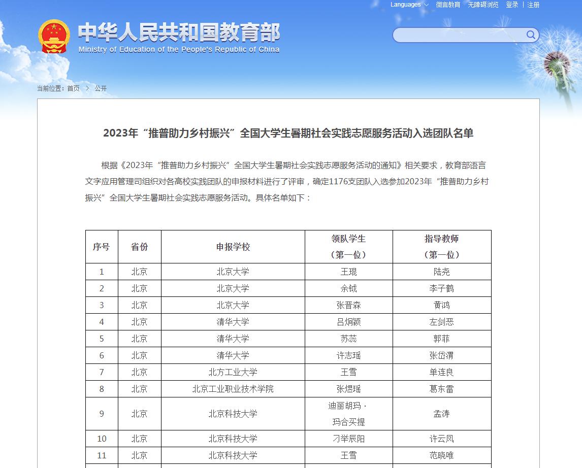近日,教育部网站公布了2023年“推普助力乡村振兴”全国大学生暑期社会实践志愿服务活动入选团队名单,全国共有1176支团队入选,其中四川有98支团队。beat365英国官方网站“'语'爱同行 '援'炉筑梦”藏区推普团成功入选。