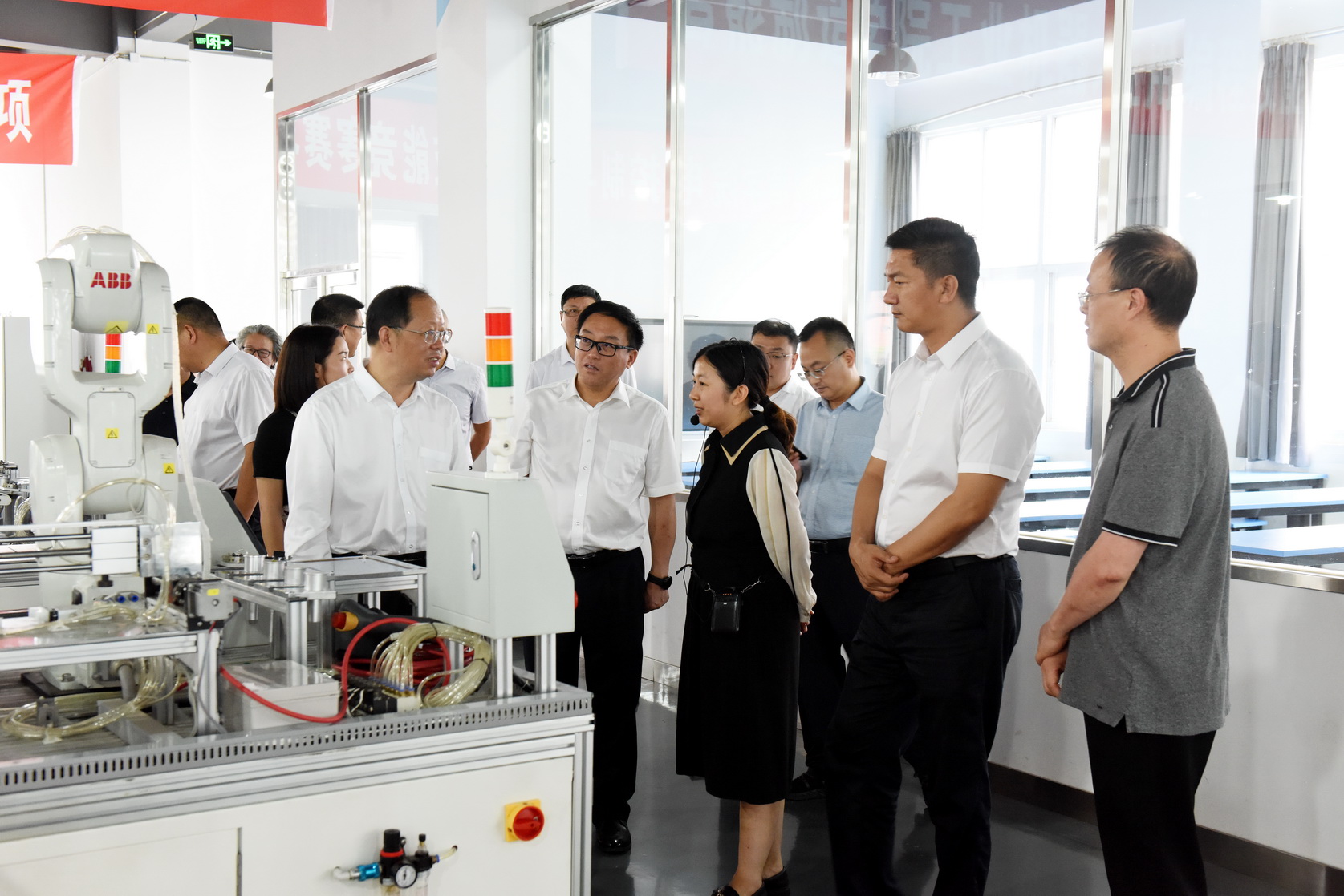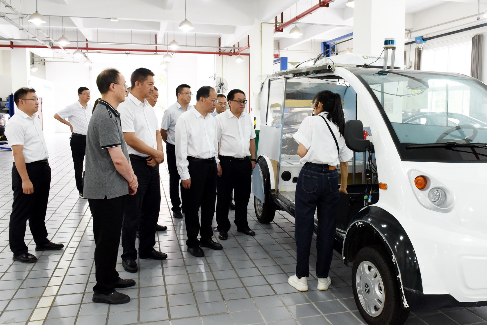 调研组一行考察调研了汽车维修实训基地、工业机器人实训基地、乐山启航精密模具有限公司(校中厂)、新能源与材料学院虚拟仿真实训中心、太阳能研究院和智慧学习工场,详细了解学校的产教融合、工业领域校地合作工作情况。