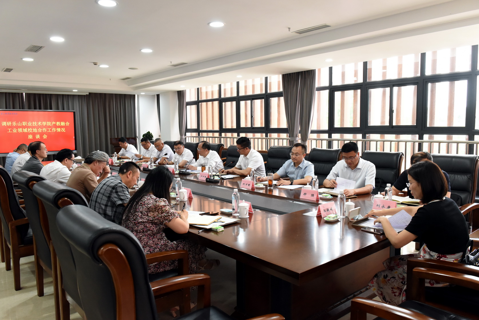 2023年6月21日下午,乐山市委常委、市总工会主席、市直机关工委书记谭焰,市政府副市长沙万强,相关市级部门领导一行来学校调研工业领域校地合作情况。学校党委书记成定彬,校长刘忠,在校副校长,党政办、发展规划处、教务处、新能源与材料学院、人工智能学院、智能制造学院负责人参加调研。