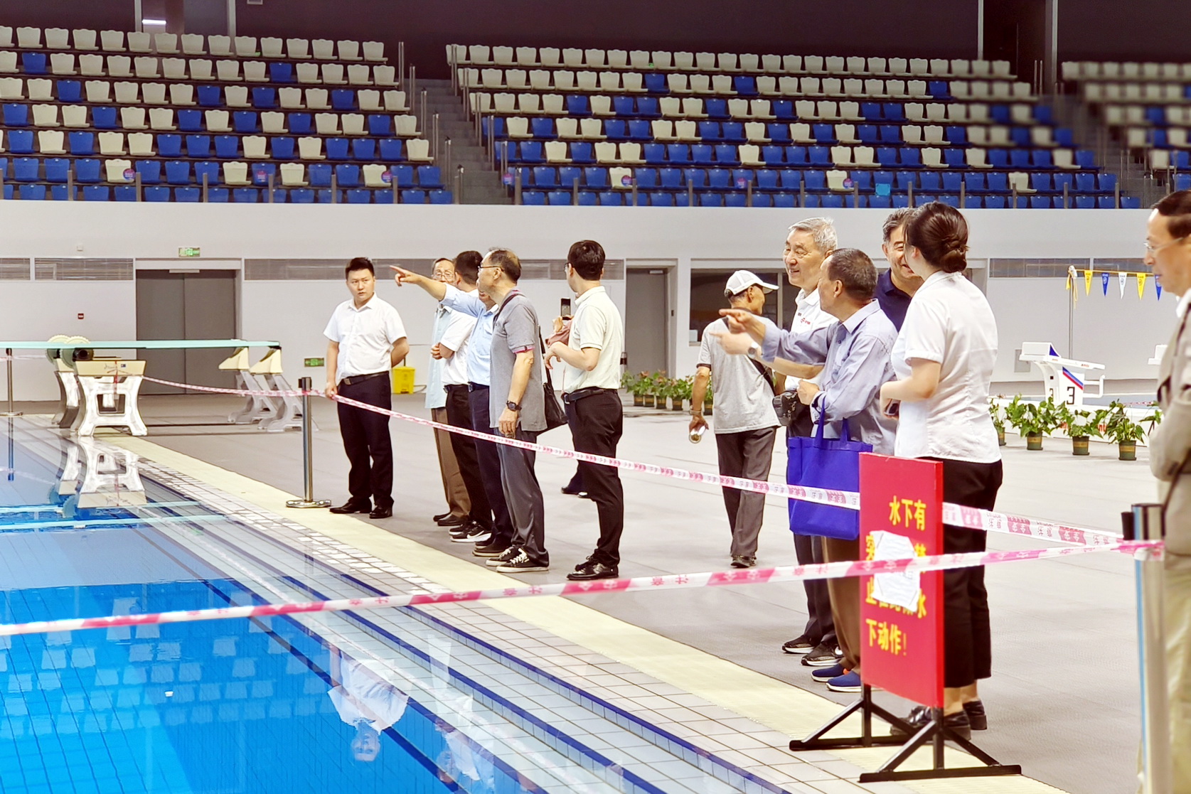 在奥林匹克中心工作人员的引领下,老干部们先后参观了主体育场、体育馆、游泳馆、综合训练馆。占地5万平方米的主体育场,红色跑道和绿色草坪交相辉映,数不胜数的橙棕白座椅交错有序,老干部们置身开阔的运动场地,仰望浩大的观众席,感慨场馆的气势恢宏,追忆省运会广大运动员和观众迸发出的豪迈热情。在体育馆、游泳馆、综合训练馆,老干部们认真聆听工作人员讲解,还兴趣盎然地了解了场地布置、功能、赛事项目等细节,深切体会团结向上、奋力拼搏、逐梦圆梦的体育精神。乐山奥林匹克中心浩大的场景震撼着老干部们,场馆洋溢的运动热情感染着老干部们。当工作人员介绍到奥林匹克中心的“山水嘉州”特殊设计意境时,老干部们更是连连称赞,感叹不已。