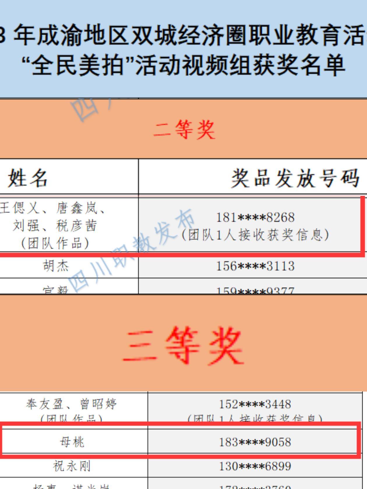 近日,四川教育融媒体中心开展的“2023年成渝地区双城经济圈职业教育活动周全省性系列活动之‘技能,让生活更美好’全民美拍活动”落下帷幕,beat365宣传部新闻中心2022级学子荣获两个奖项。他们分别是二等奖获奖作品《技能,让生活更美好》,作者:王偲乂(新能源与材料学院)、唐鑫岚(数字与经管学院)、刘强(临床医学学院)、税彦茜(新能源与材料学院);三等奖作品《抵制“三无”产品》,作者:母桃(现代农业学院)。