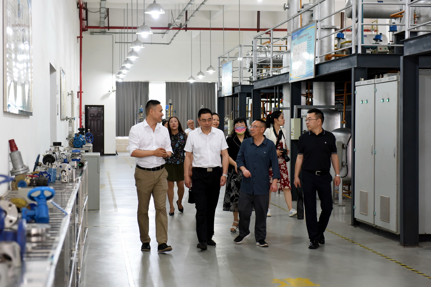 会前,田亮一行在陈元进的陪同下,在礼堂观看了学院宣传片,参观考察了学校体育场馆、智慧能源中心、3号实习工厂、游泳馆等。