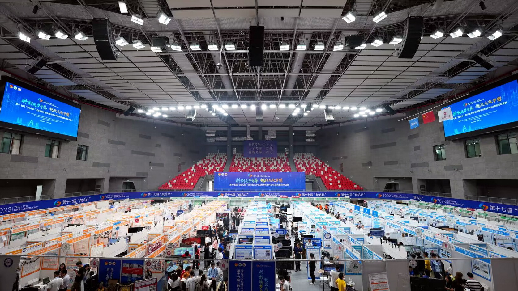 四川省“挑战杯”大学生课外学术作品竞赛由共青团四川省委、四川省委组织部、省社会科学院、省科学技术厅、省人力资源和社会保障厅、省学联共同主办,成都大学承办,省内112所高校10万余名师生积极参与,1035件优秀作品推报省赛。