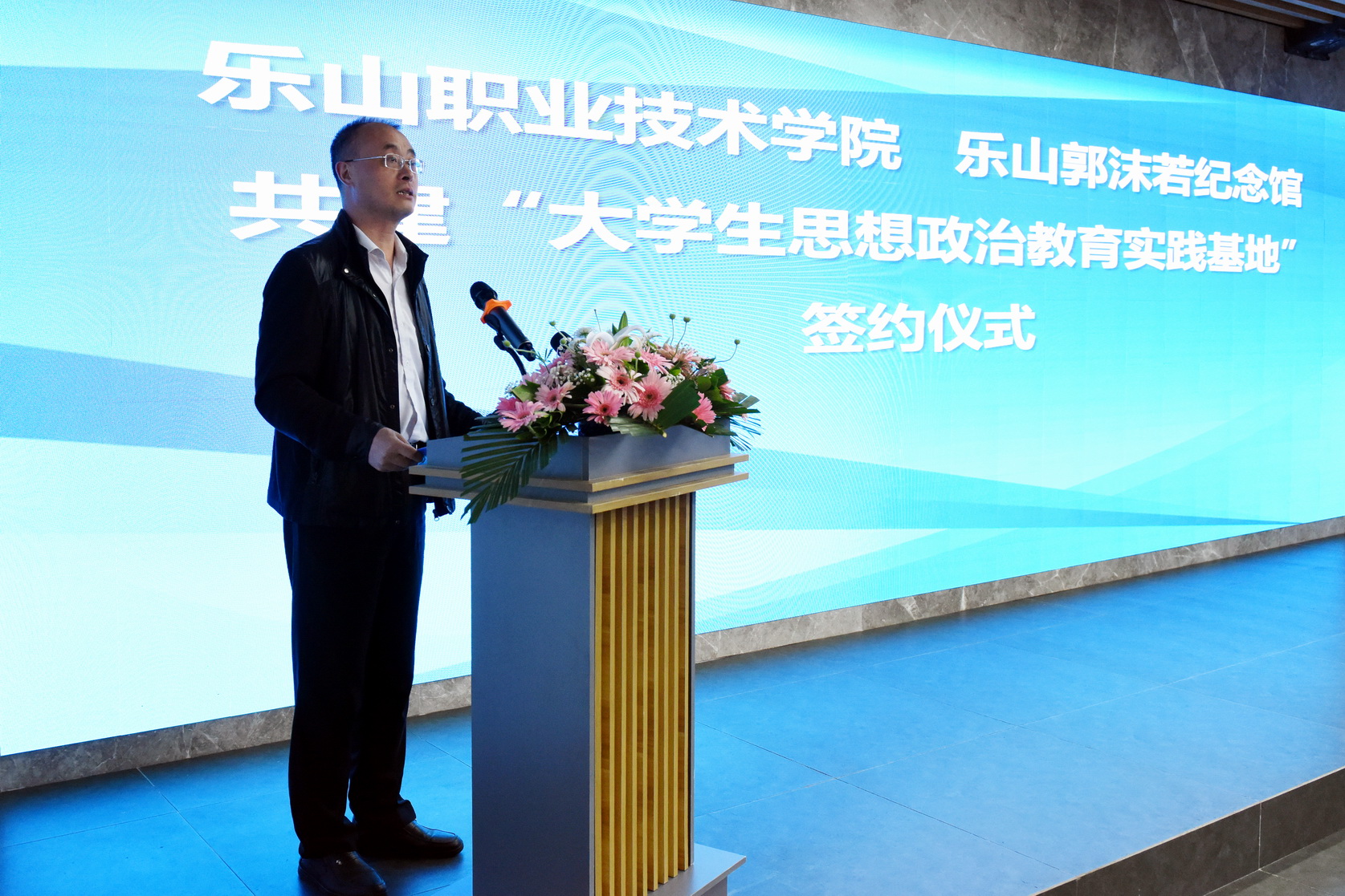 5月10日上午,beat365英国官方网站、乐山郭沫若纪念馆共建“大学生思想政治教育实践基地”签约仪式在郭沫若纪念馆书画院举行。beat365英国官方网站院长刘忠,校团委副书记龚涛,马克思主义学院副院长徐志红,沙湾区委常委、宣传部部长周强,区委常委、副区长朱钦翥,区科协主席王伦华,区旅游景区管委会主任郑镰,郭沫若纪念馆馆长张霖,以及学校师生代表45人参加了本次活动。