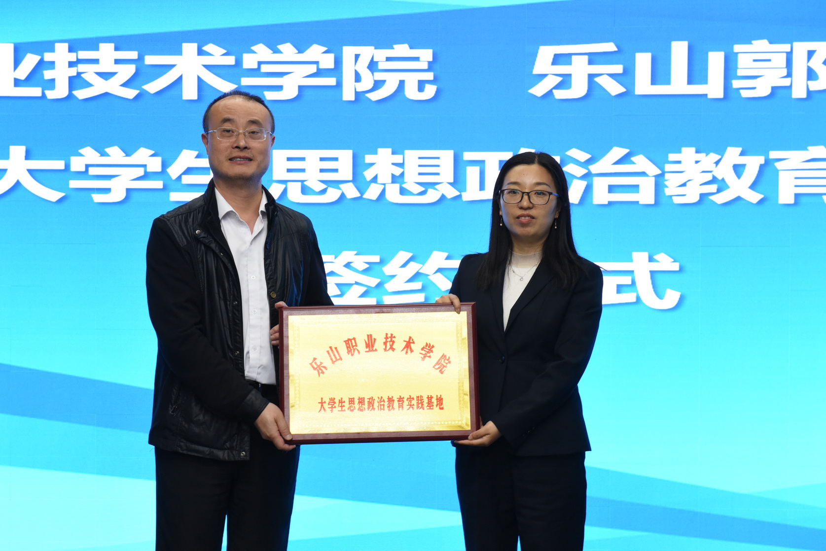 签约仪式由朱钦翥主持,沙湾区委常委、宣传部部长周强致辞。刘忠、郑镰分别代表beat365英国官方网站、乐山郭沫若纪念馆签约,刘忠向郭沫若纪念馆授beat365英国官方网站“大学生思想政治教育实践基地”铜牌,张霖接牌。