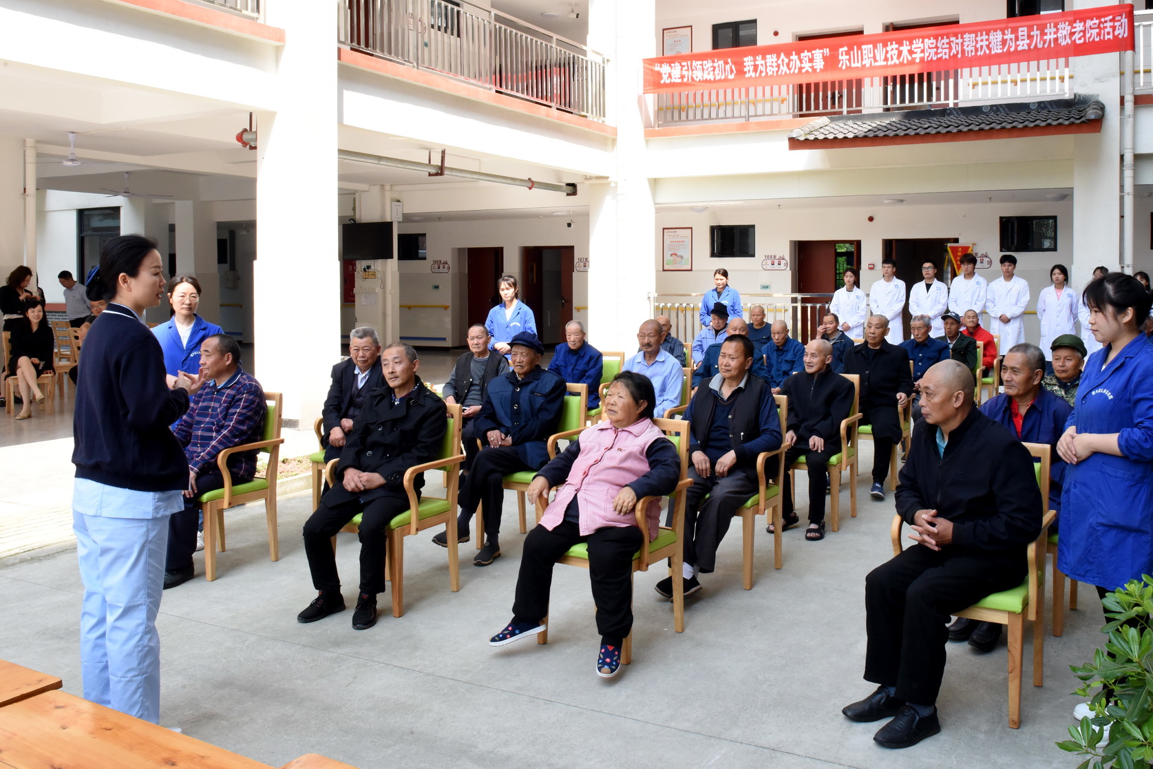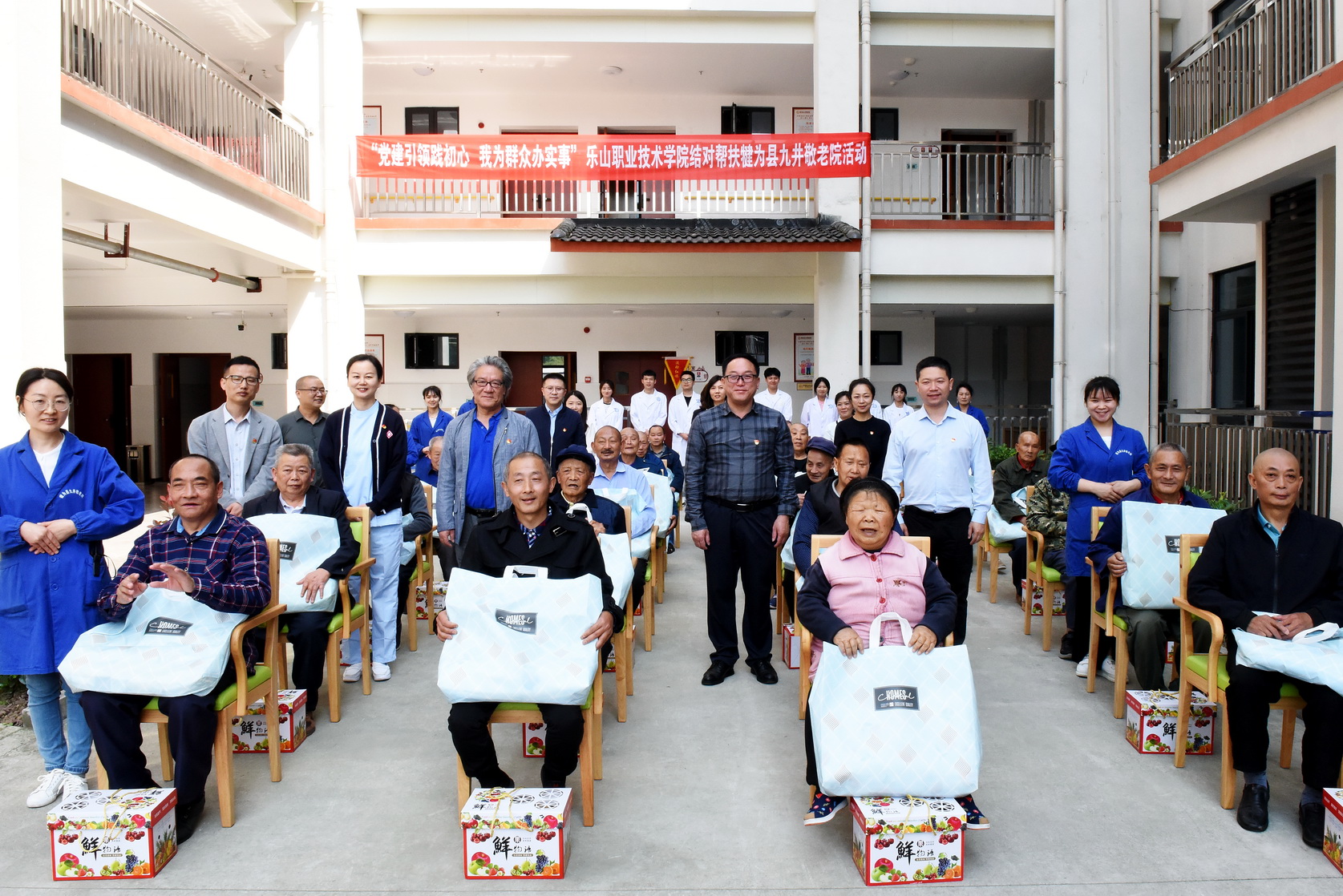 为深入学习宣传贯彻党的二十大精神,切实发挥党建引领作用,推动“我为群众办实事”活动走深走实,认真做好结对共建帮扶工作,4月27日上午,学校党委书记成定彬、党委副书记陈芝海等一行赴犍为县九井敬老院开展党建引领结对帮扶活动。