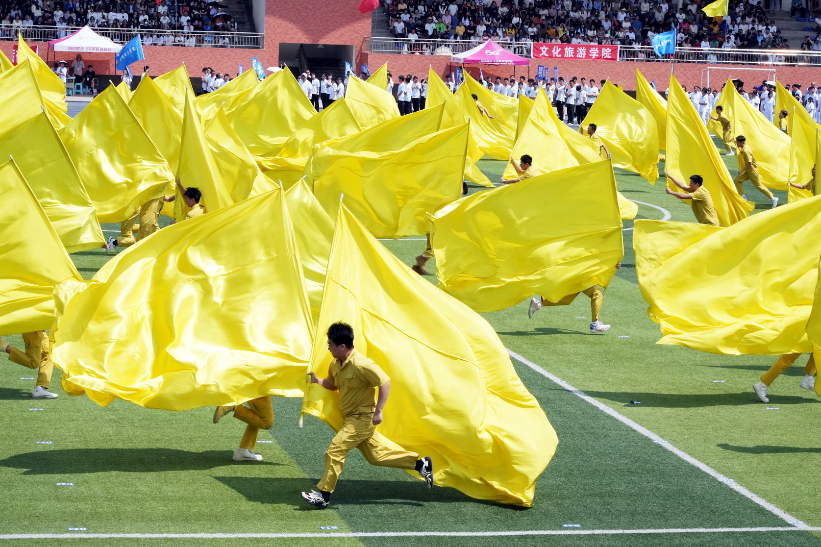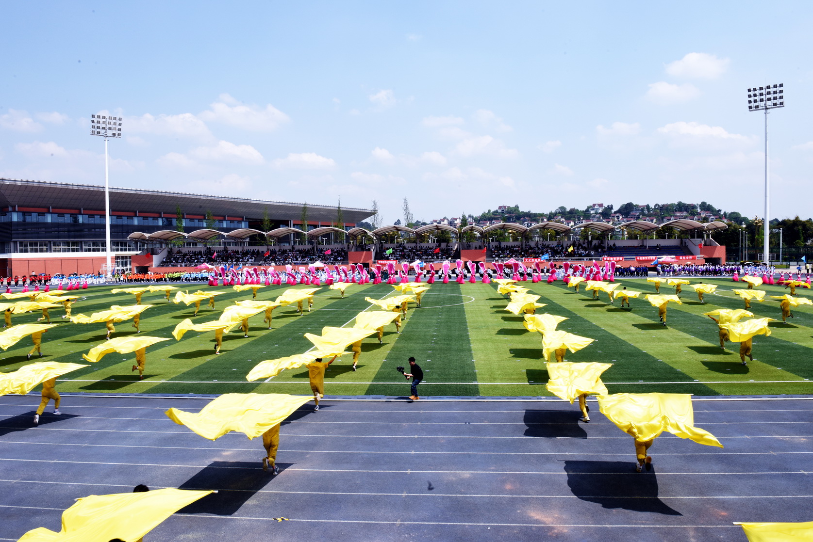 这是开幕式上的学生风采展示《青春花海》《扬帆起航》,共有两百名学生参演。