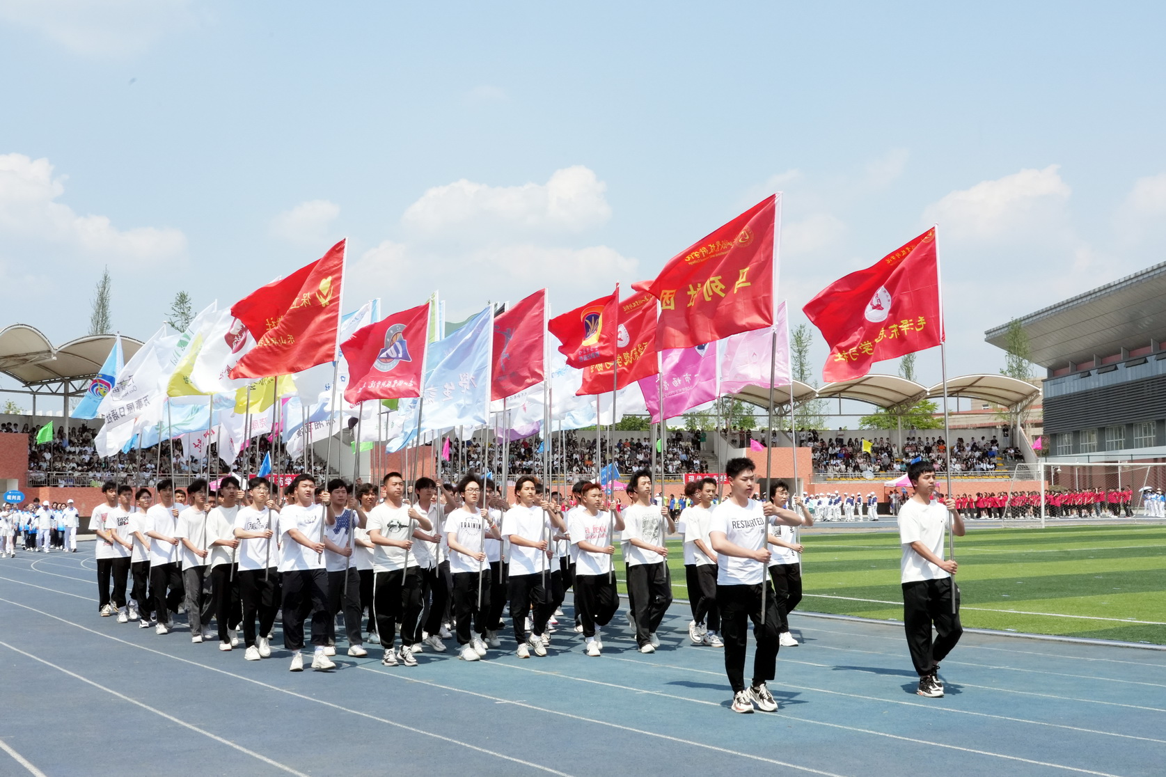 国旗护卫队、校旗、会旗,运动员方阵入场。