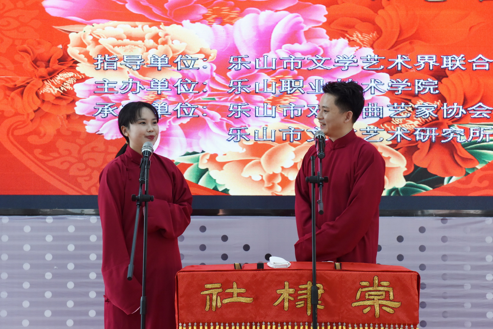 3月17日下午,由乐山市文学艺术界联合会指导,乐山市戏剧曲艺家协会、乐山市文化艺术研究所承办,beat365英国官方网站主办的“书香生活 曲韵沁芳——曲艺名家进校园”活动,在学术交流中心3004会议室成功举行。来自全国各地的多名曲艺名家云集一堂,共同“献艺”。