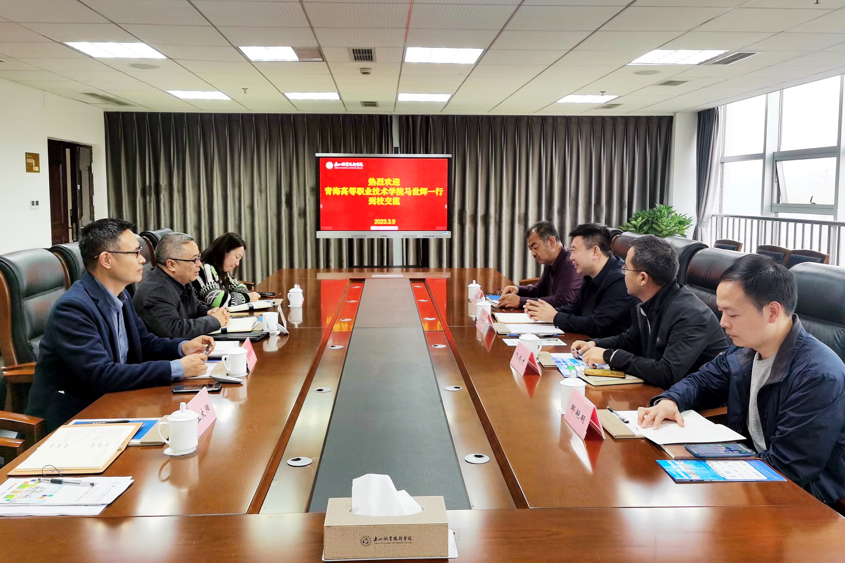 2023年3月9日,青海高等职业技术学院副院长马世辉一行4人来院访问交流。双方在学术交流中心3003召开座谈会,学院副院长张学河主持会议,教务处、新能源与材料学院负责人参加座谈。双方就校校合作、新能源专业建设等方面进行深入交流。