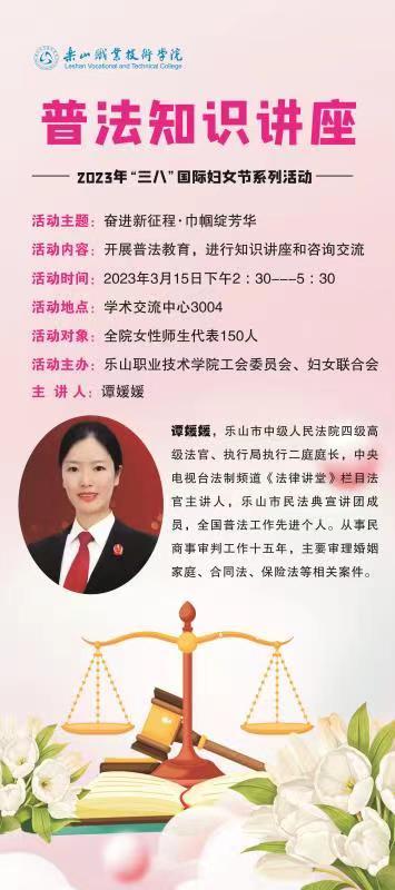 3月15日下午,将举办面对全院女性师生的普法知识讲座。