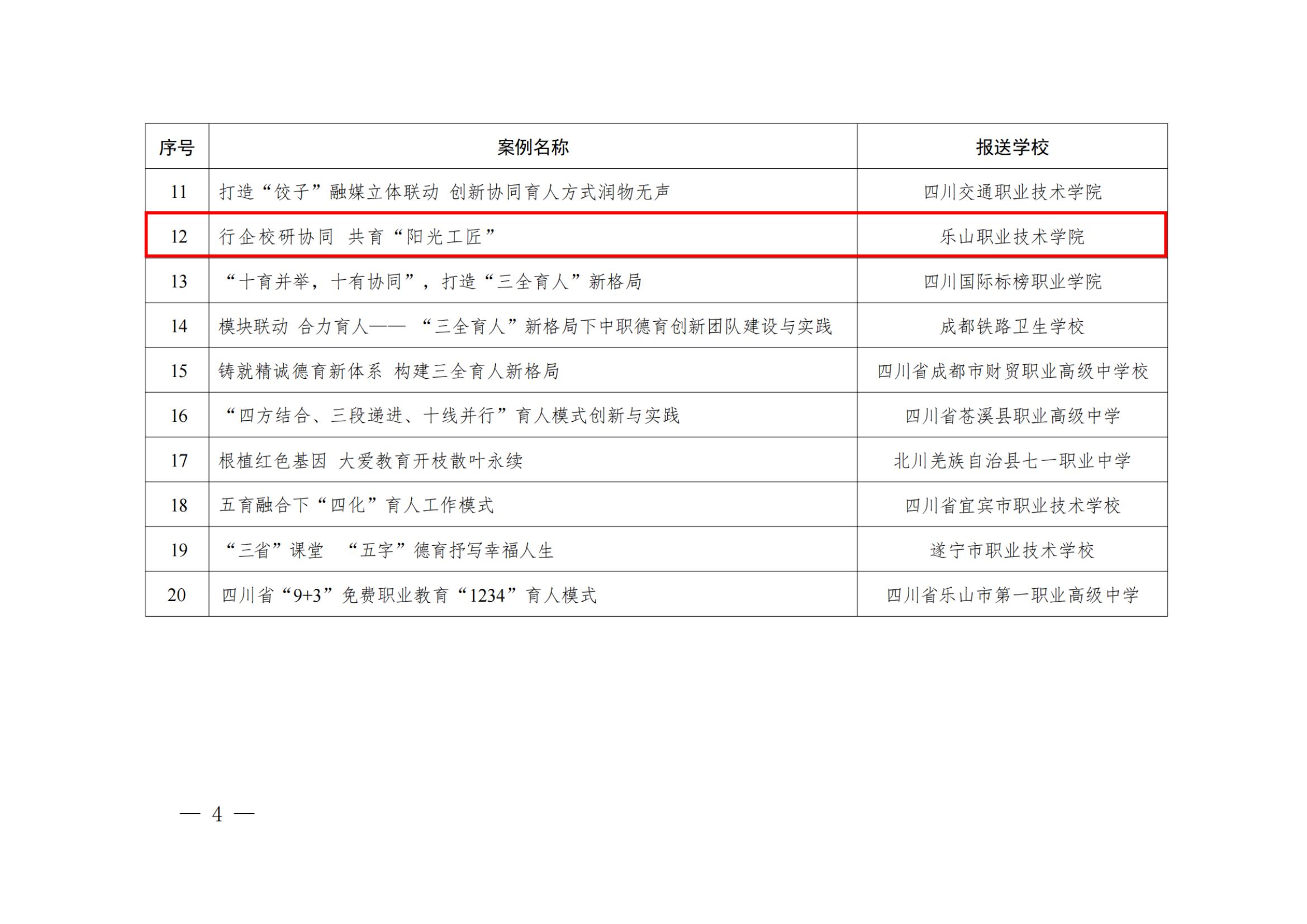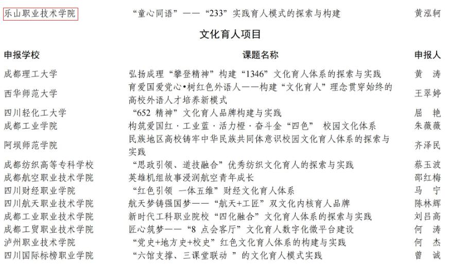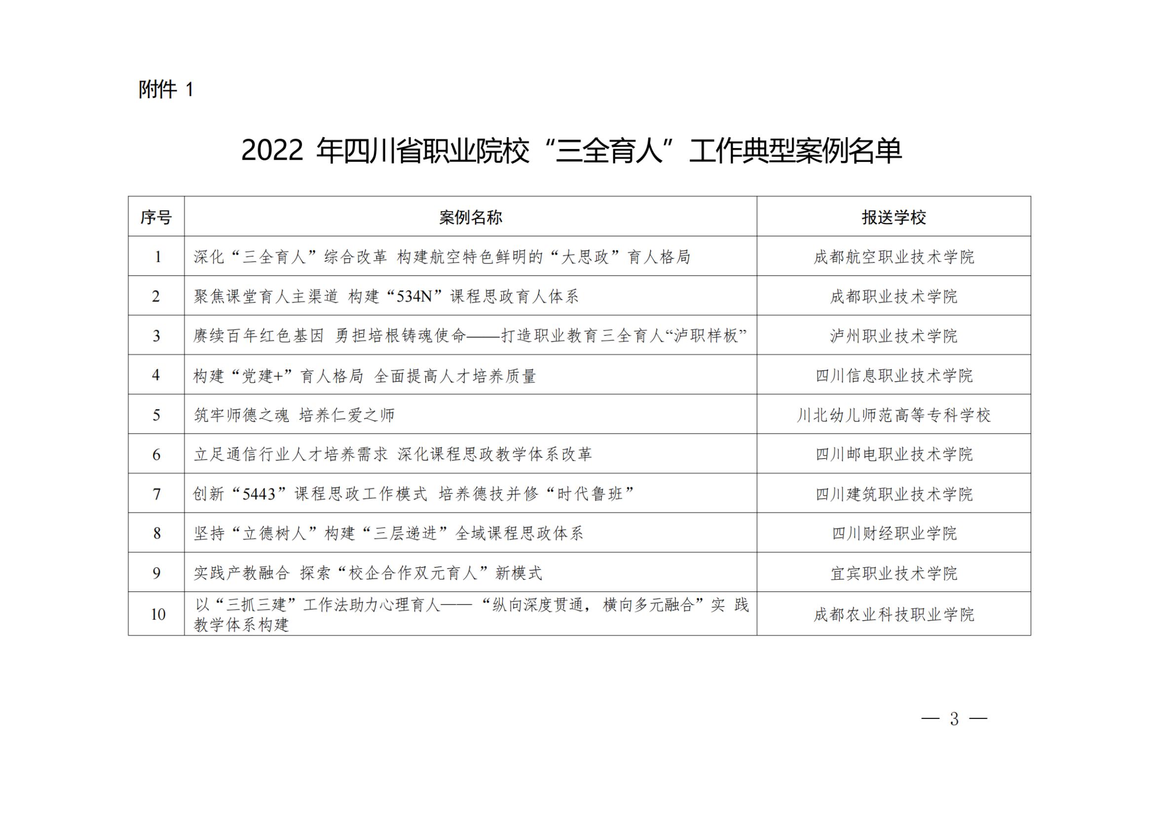 一、四川省2022年职业院校“三全育人”典型学校培育学校