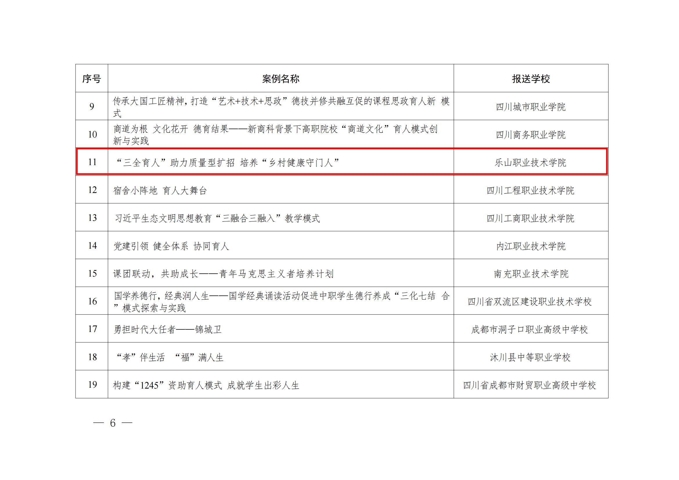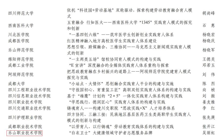 我院《“三全育人”助力质量型扩招 培养“乡村健康守门人”》案例入选2022年四川省职业院校德育与学生管理工作典型案例。