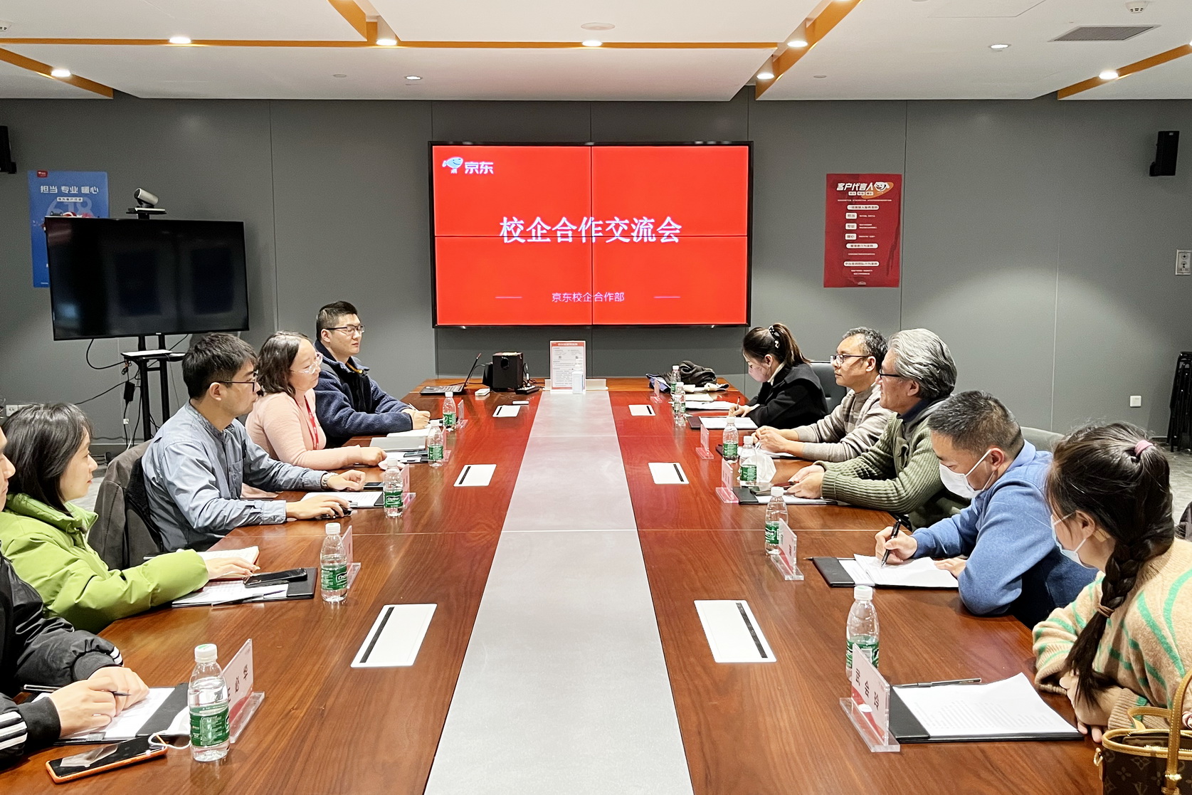 为全面深化校企合作、供需对接,推动共建产业学院,促进毕业生更高质量就业,2023年1月3日,学院党委副书记陈芝海带领财经管理系主任邵其会、副主任何瑞及相关专业负责人一行,前往京东西南总部进行考察调研,与在该企业工作的学院学生进行亲切交流,并与企业召开了京东数字商务产业学院建设推进会。