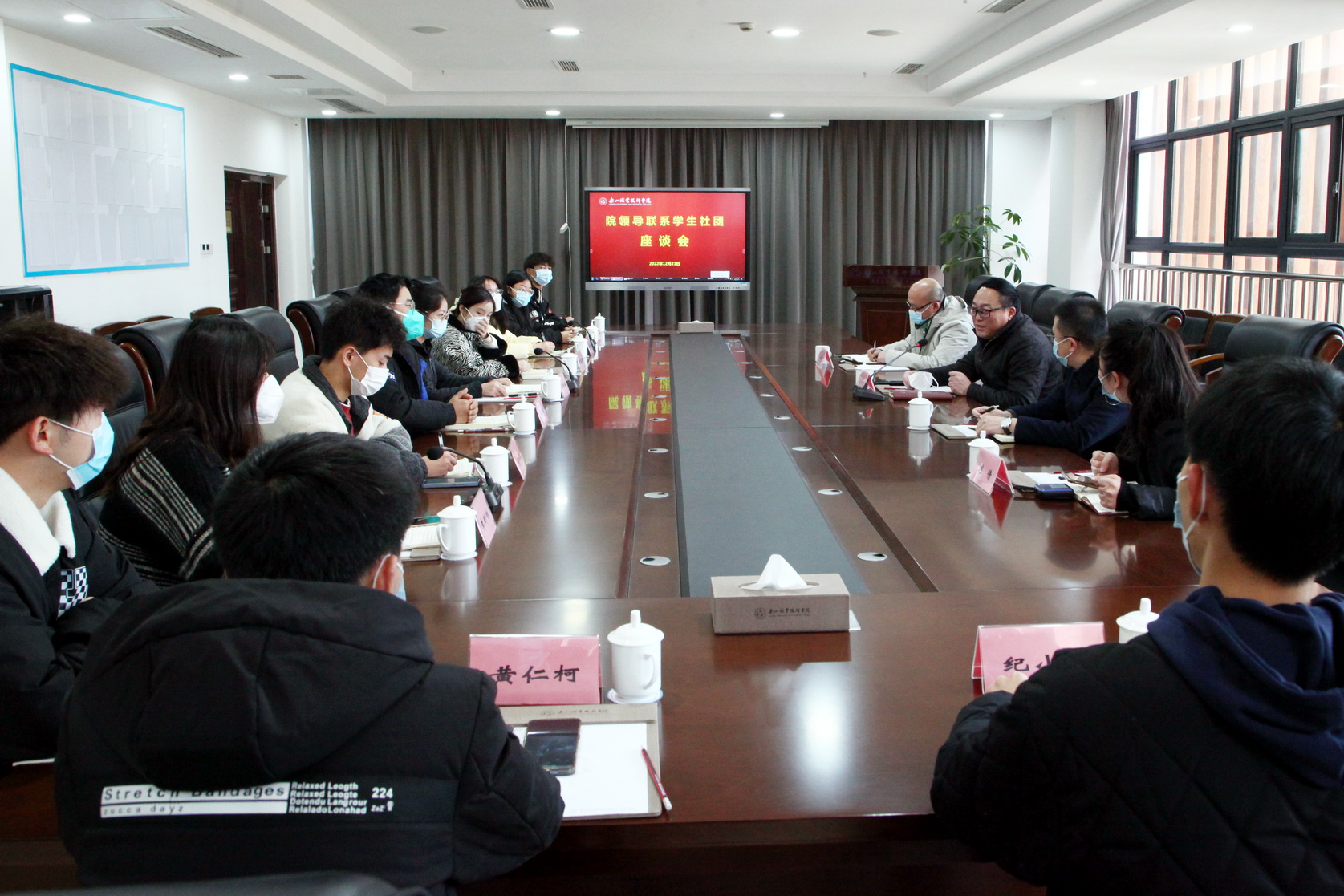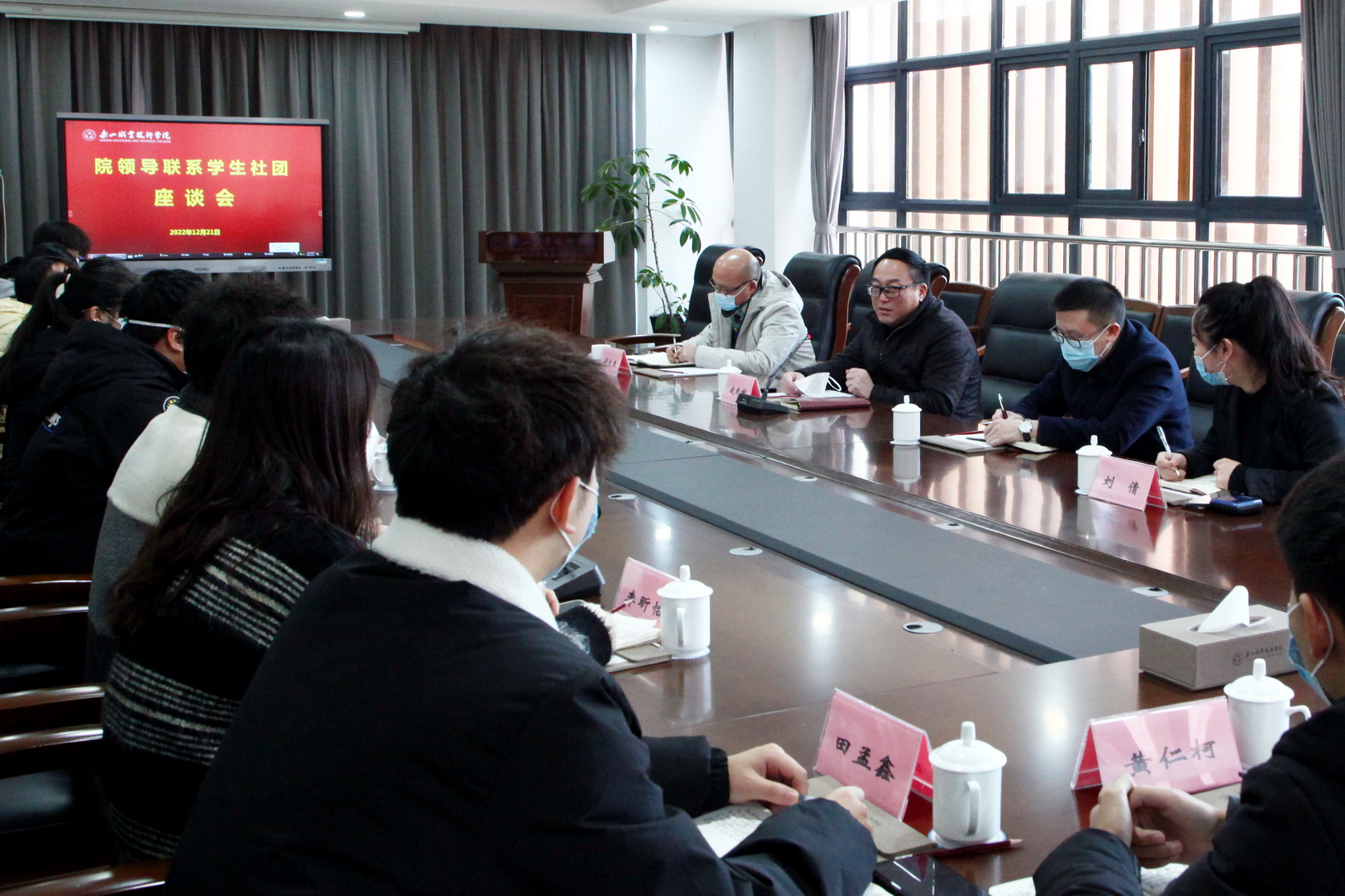 2022年12月21日下午,学院党委书记成定彬走进马列社团与学生代表交流座谈,宣讲党的二十大精神,为学生上了一堂生动的形势与政策课。马列社团学生代表,党委宣传部、学工部、院团负责人参加宣讲座谈会。