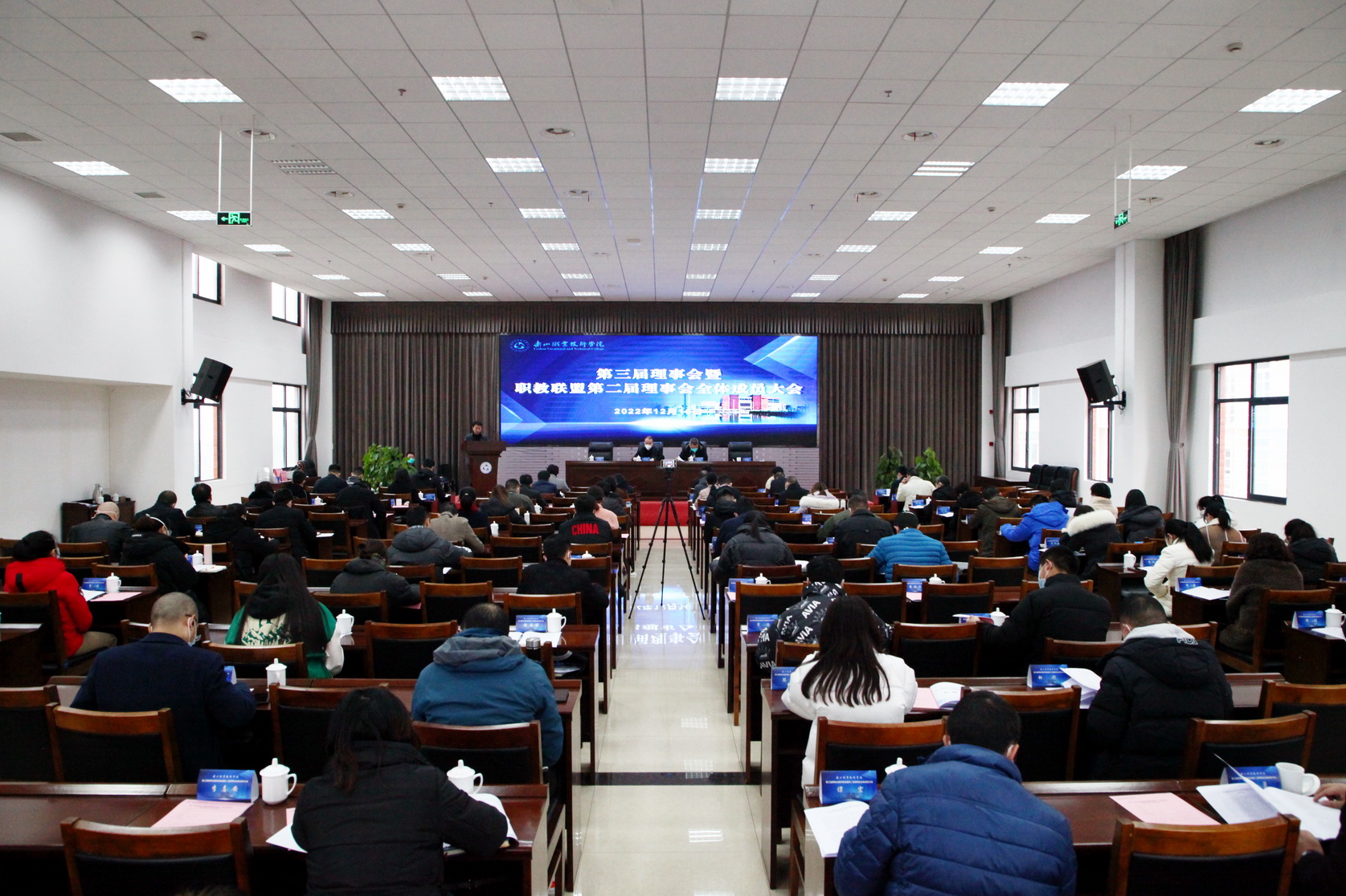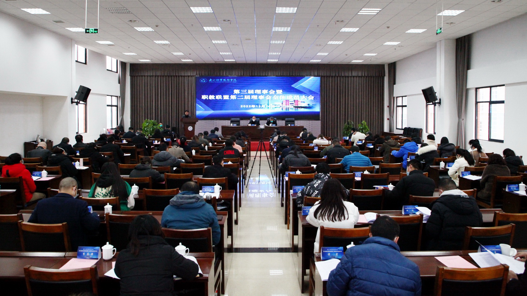 仲冬正盛,腊梅含香。12月16日上午9时,beat365英国官方网站第三届理事会暨职教联盟第二届理事会全体成员大会在学术交流中心隆重召开。来自全国各地的60多家理事会成员单位和职教联盟成员单位,以及学院领导、相关处室负责人、各系(部、院)班子成员出席本次大会。会议由学院党委委员、副院长封家福主持。